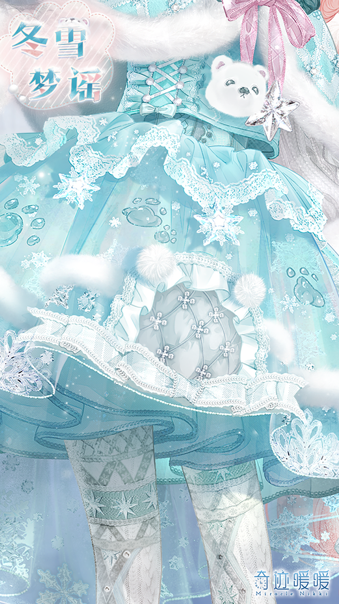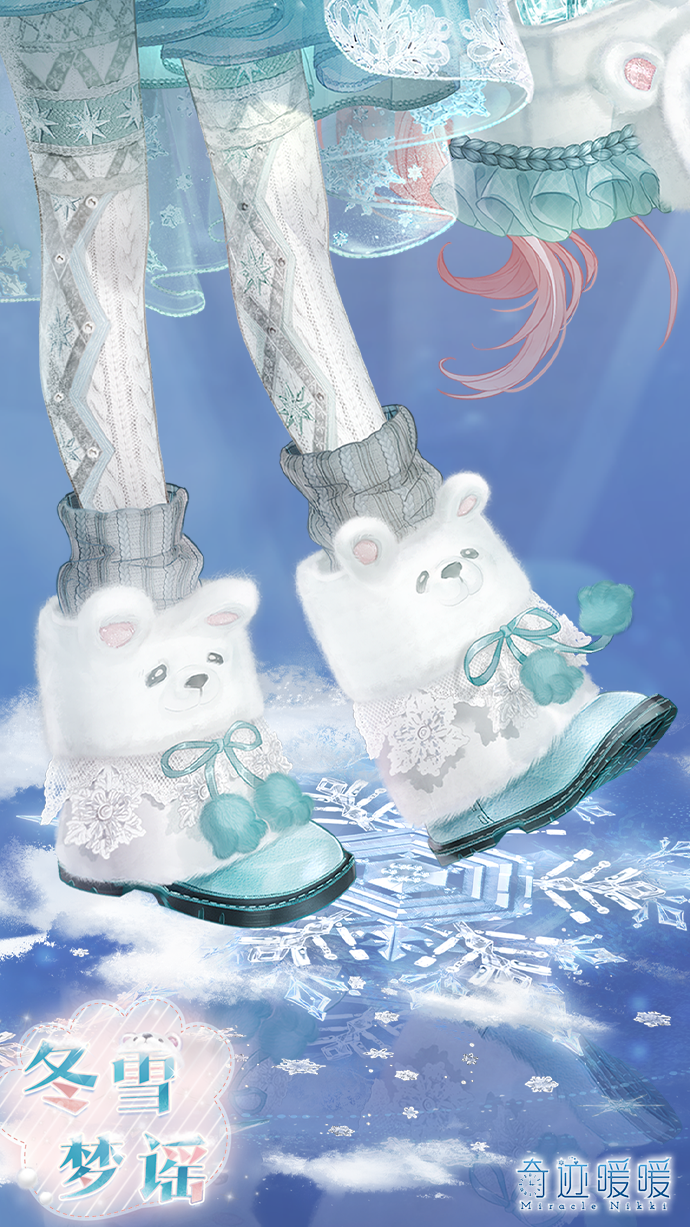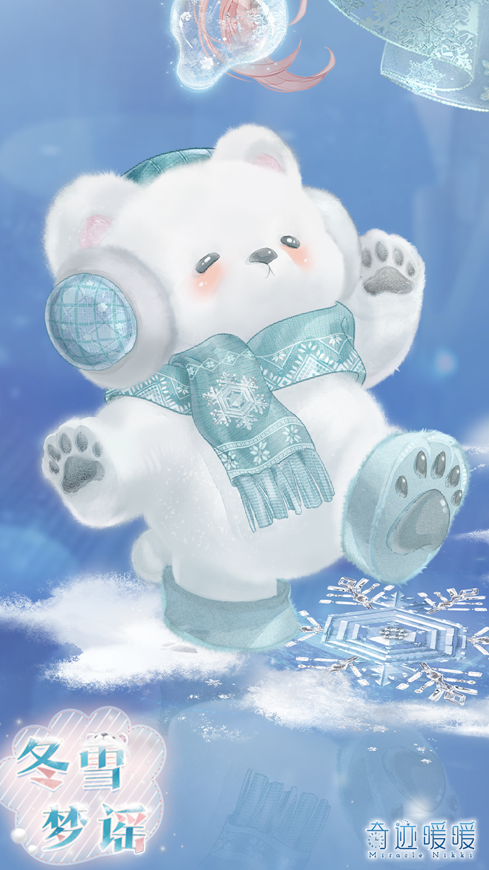 【冬雪梦谣】含正常姿势与特殊姿势,精美可移动摆件“永绽霜花”、“纯真伙伴”。海报展示妆容为“无忧之歌”。