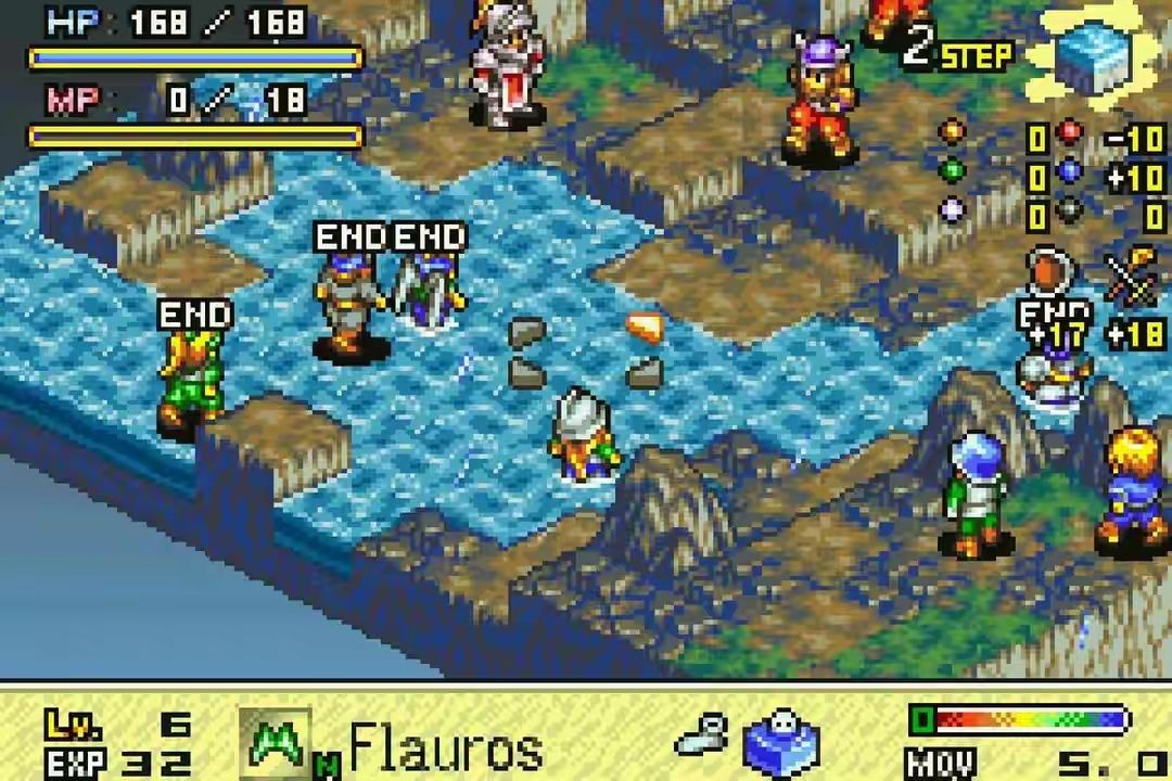 本作摒弃了《皇家骑士团64》的即时行动模式,回归《皇家骑士团2》的45度视角高低差方格地图,适配早期发售GBA掌机硬件性能,新老玩家易上手: