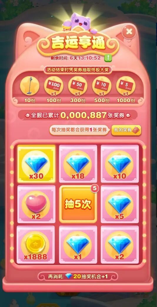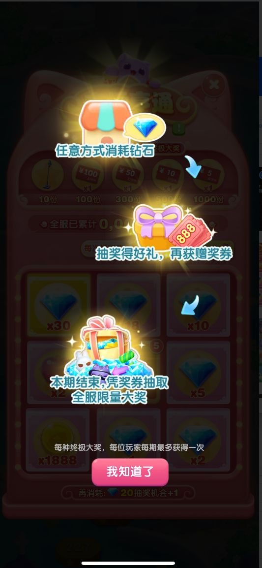 2,每次抽奖必得钻石等游戏奖励,还会再额外获赠“奖券”