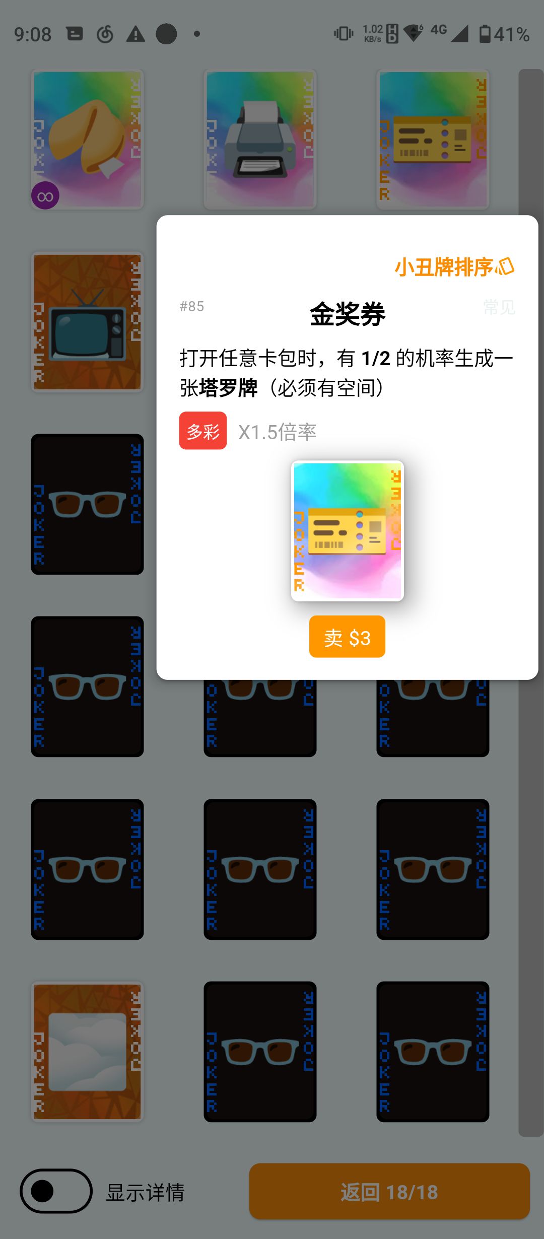 无限资源之后就很好操作了,手牌方面,可以靠塔罗牌,倒吊人删卡,骷髅头复制自己想要的牌,狮子变数字等等。小丑牌方面可以刷黑洞、献血这类刷子成长,也可以找上面左脚踩右脚的配件,配合上克苏鲁卡片给的小丑槽和幻灵牌给的卡,直接突破上限。