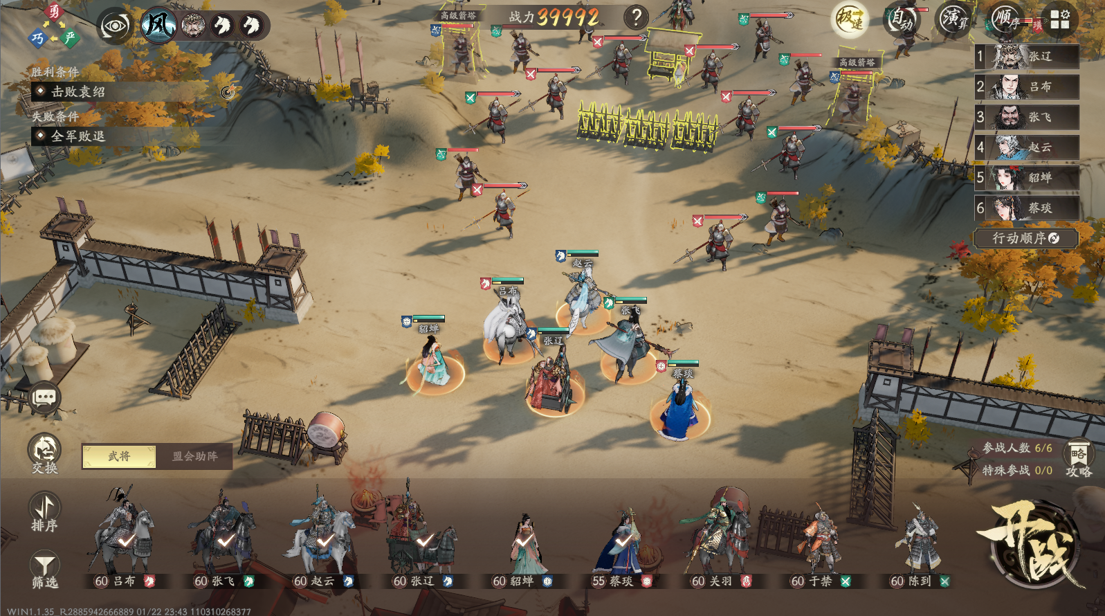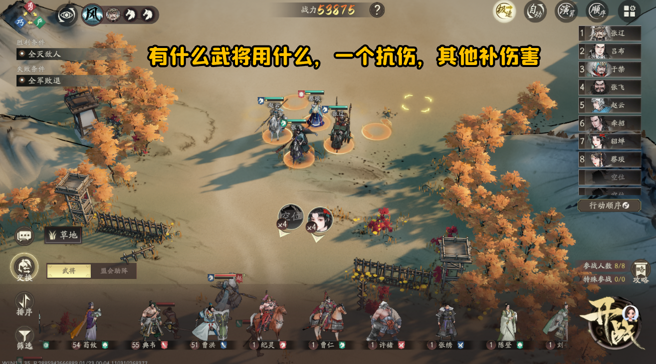 阵容参考:吕布十、貂蝉四、张辽7、牵招4、蔡琰1、赵云8