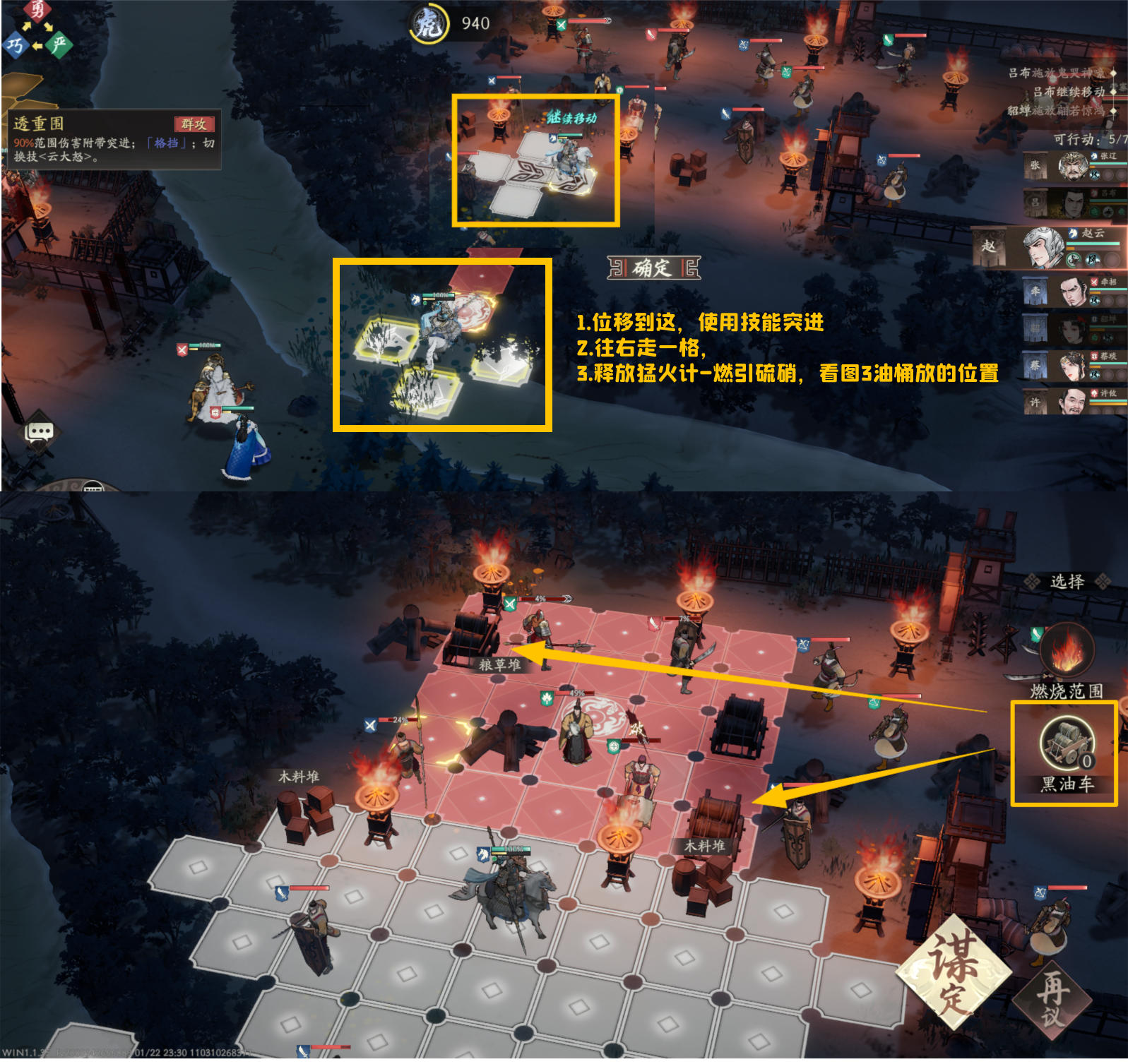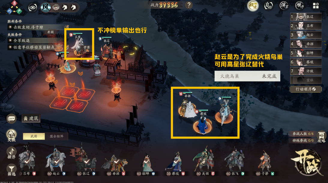 火烧乌巢:触发火烧乌巢事件后,张郃就会过来主动打你,就能在第2、3回合击败它,顺手把五子良将(五回合内击败张郃)完成了。注:可看下图的详细介绍