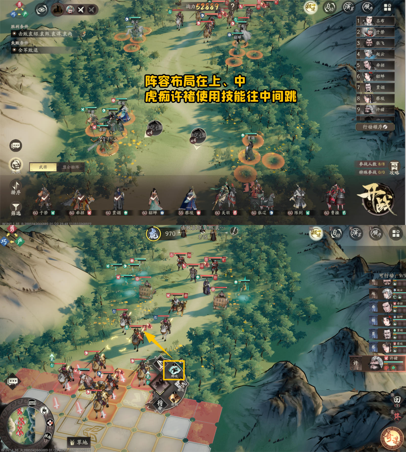无难度,阵容不做推荐,高练度即可,选择三次诱敌深入,随后虎痴许褚往中间跳。上半部分解决完后往中间赶(如果3名武将解决不了,那就增加到4名武将)。