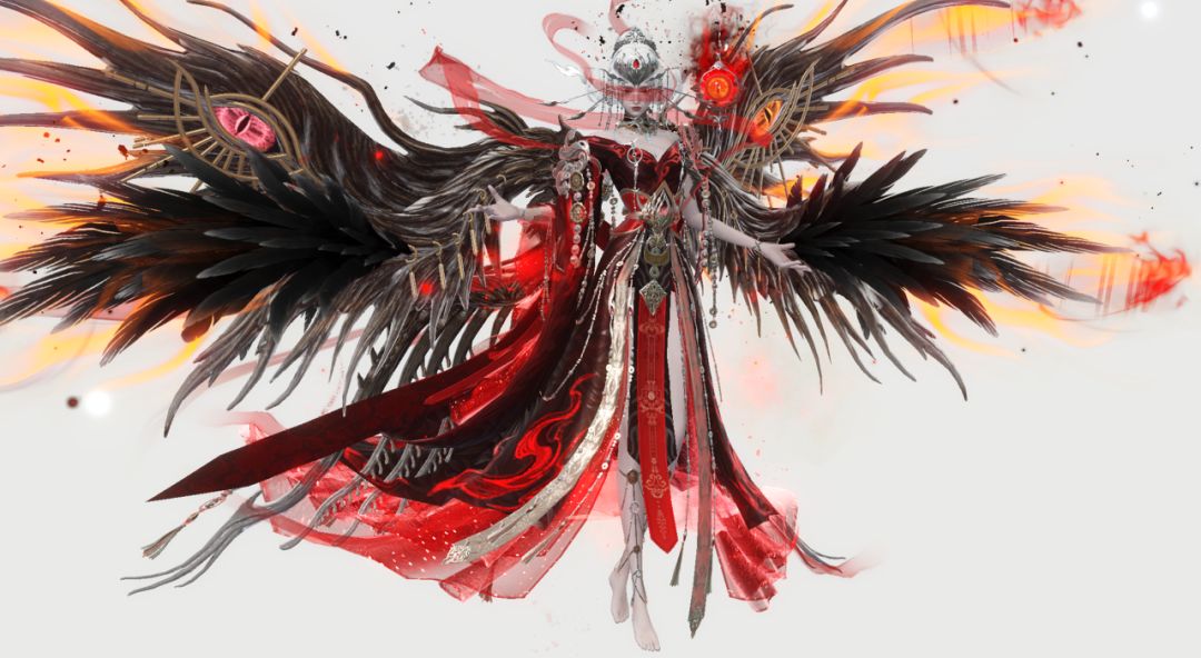 红品男装仿若从幽冥之中被召唤出的魔神,发型被永恒燃烧的火焰所替代,而身体则化为熔炉与魔身,又好似生出诡谲的魔眼与大口,吞入所见到的一切...无面、不是缺陷,而是超越。此身,是帝江、也是我。