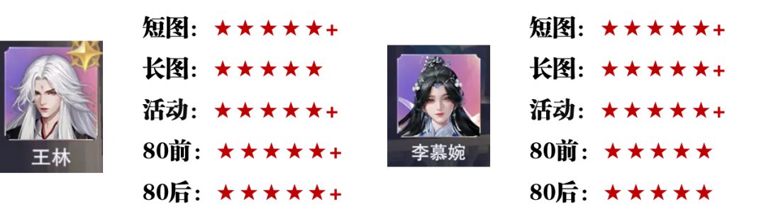 接着便是SP王林和SP李慕婉这对夫妻了,而因为SP+宁荣荣的上线,其短图和追求短图的活动副本中由于SP+宁荣荣【琉璃碎雨·坠】这个需要同时上阵强、敏攻魂师才能奇效的卡牌,可能间接有一定程度上提升了SP王林的价值......所以目前SP王林看起来虽然有点不显山不露水的,但只要我们需上阵一位敏攻系魂师,其就是当之无愧的第一优先......且属于完全没有竞争威胁的独一档存在,因此维一才会给他如此之高的评分。而SP李慕婉则不用多讲了,在增伤方面那简直就是天人般的数值设定,全控制系独此一家......
