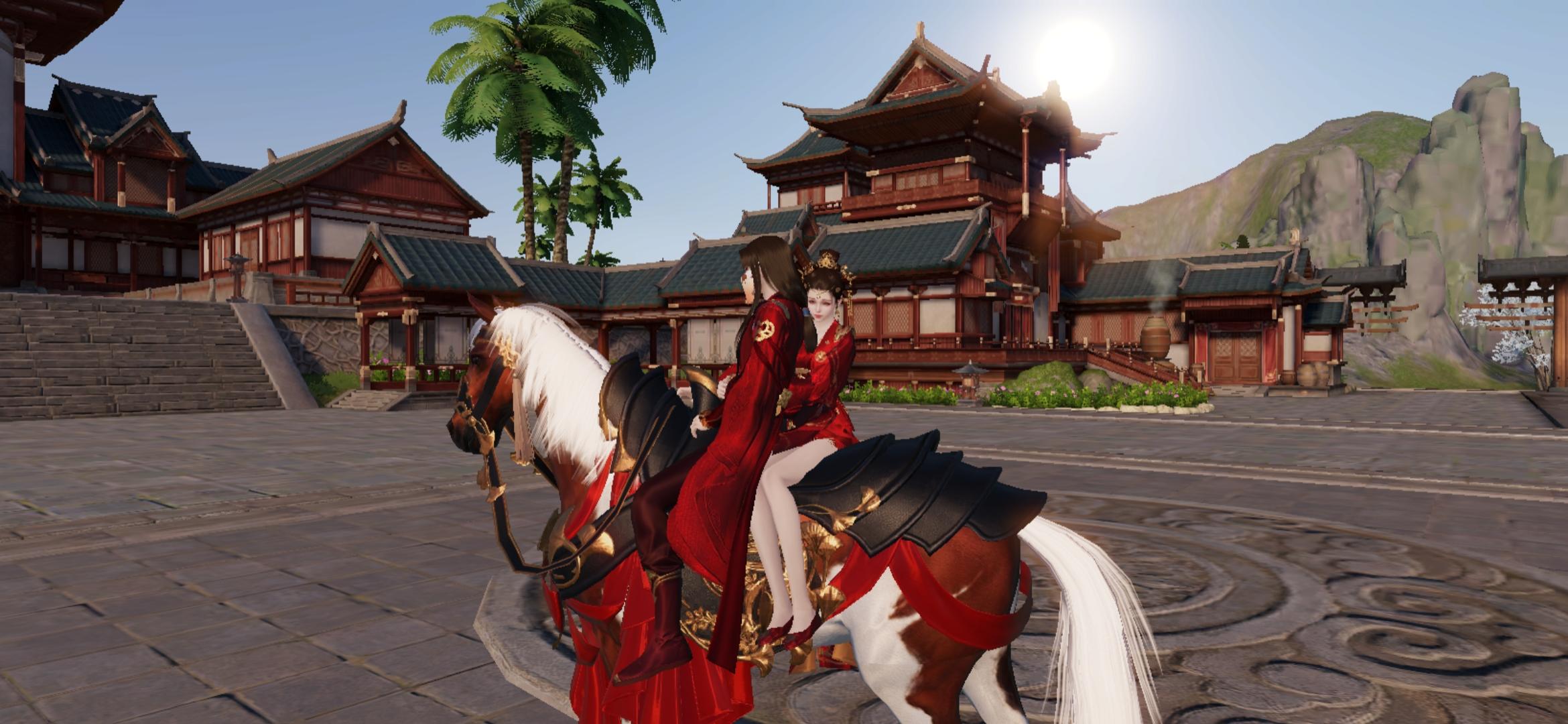 这里帮派内我去更新雕像外观,拍照的时候他的腰饰还是纸鹤