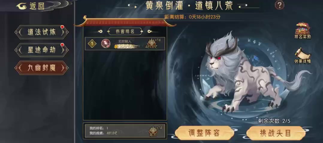 【高配展示】九幽试炼之金银狮王高配阵容分享