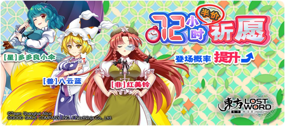 祈愿概率UP角色:[兽]八云蓝、[星]多多良小伞、[非] 红美铃