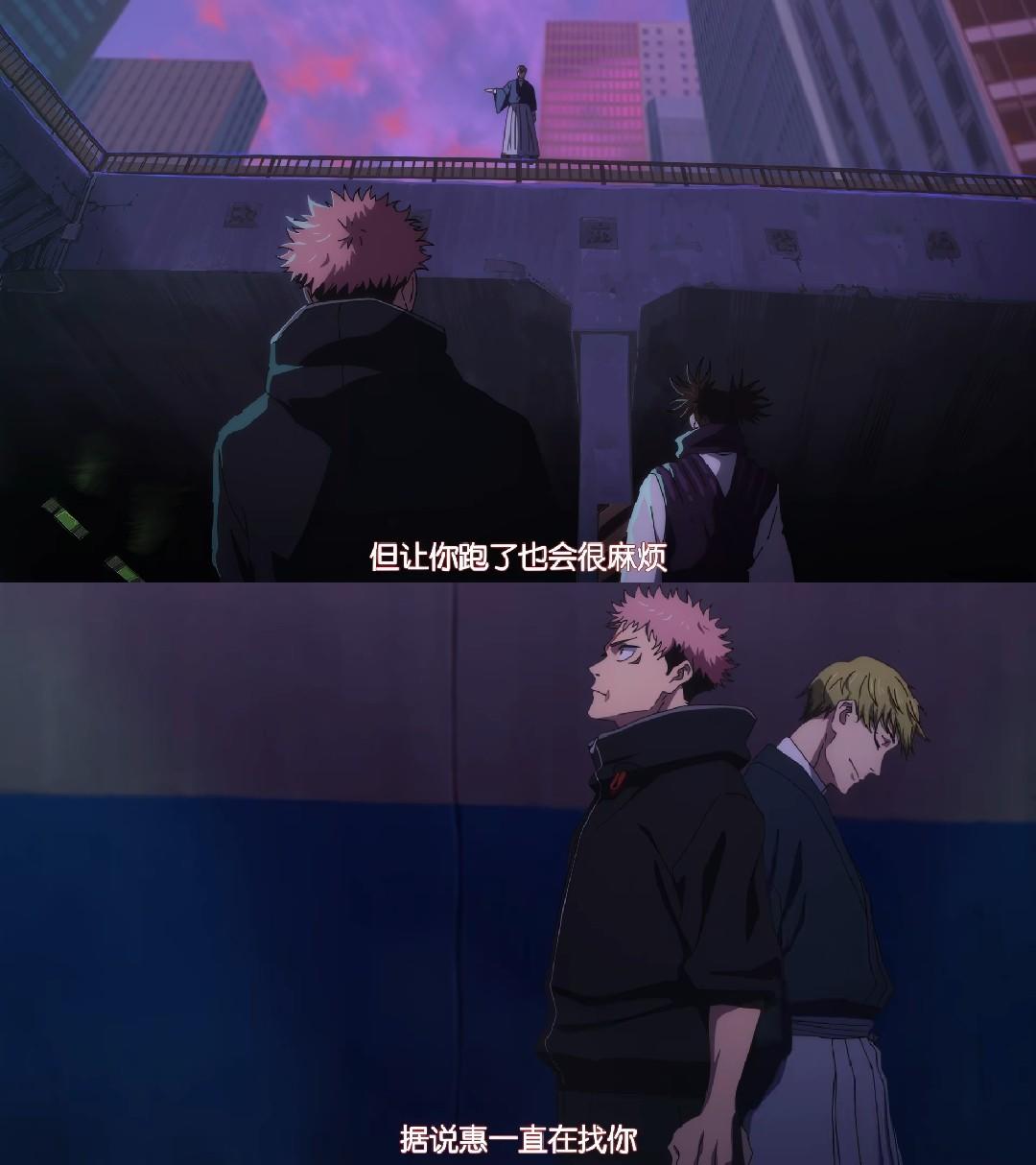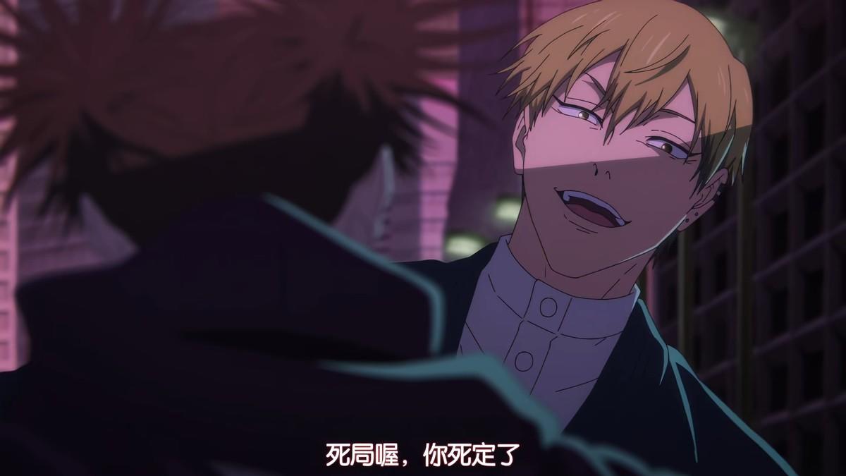 《咒术回战:涩谷事变》剧照 胀相回到《死灭回游》,在胀相与虎杖祓除东京咒灵的间隙,禅院直哉初登场便尽显威风,站在桥上,居高临下,轻描淡写的说出要打断虎杖的腿,并且杀死伏黑惠。上一秒还在谈笑风生,下一秒就几乎是瞬移一样,来到了虎杖的身边。