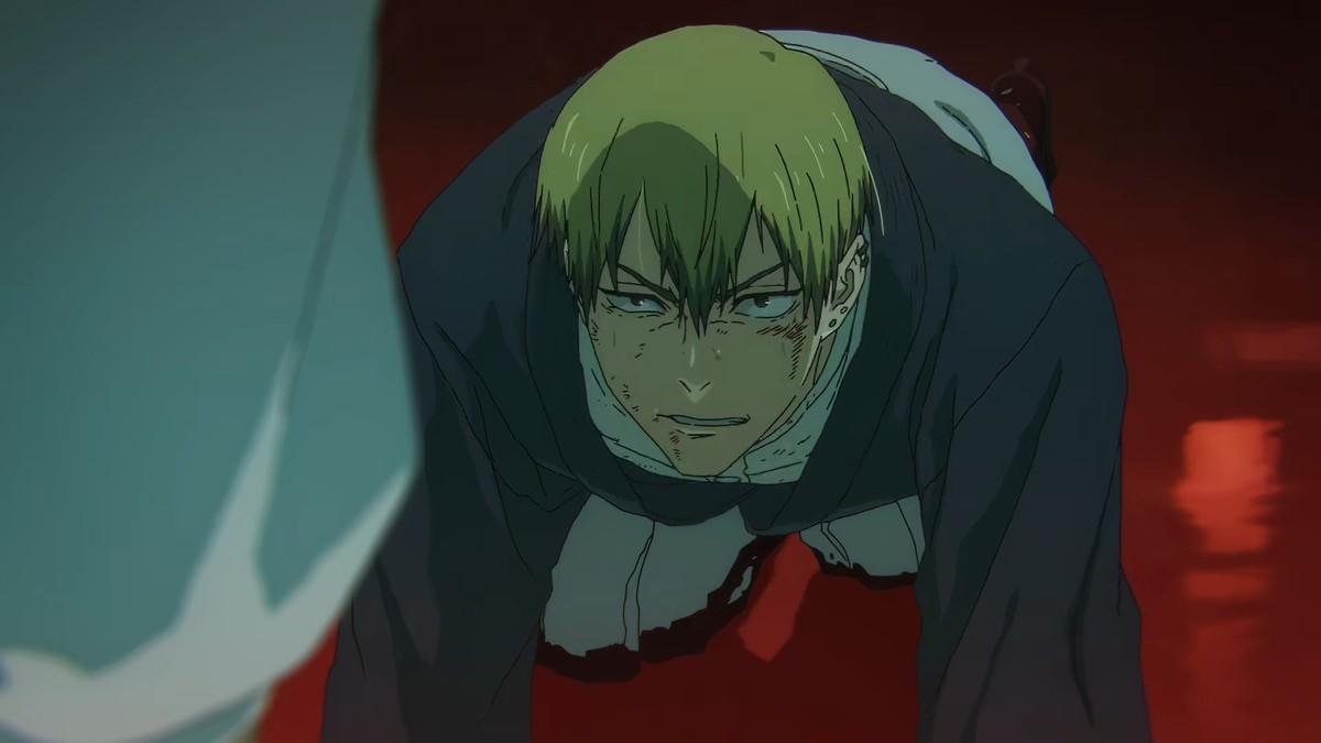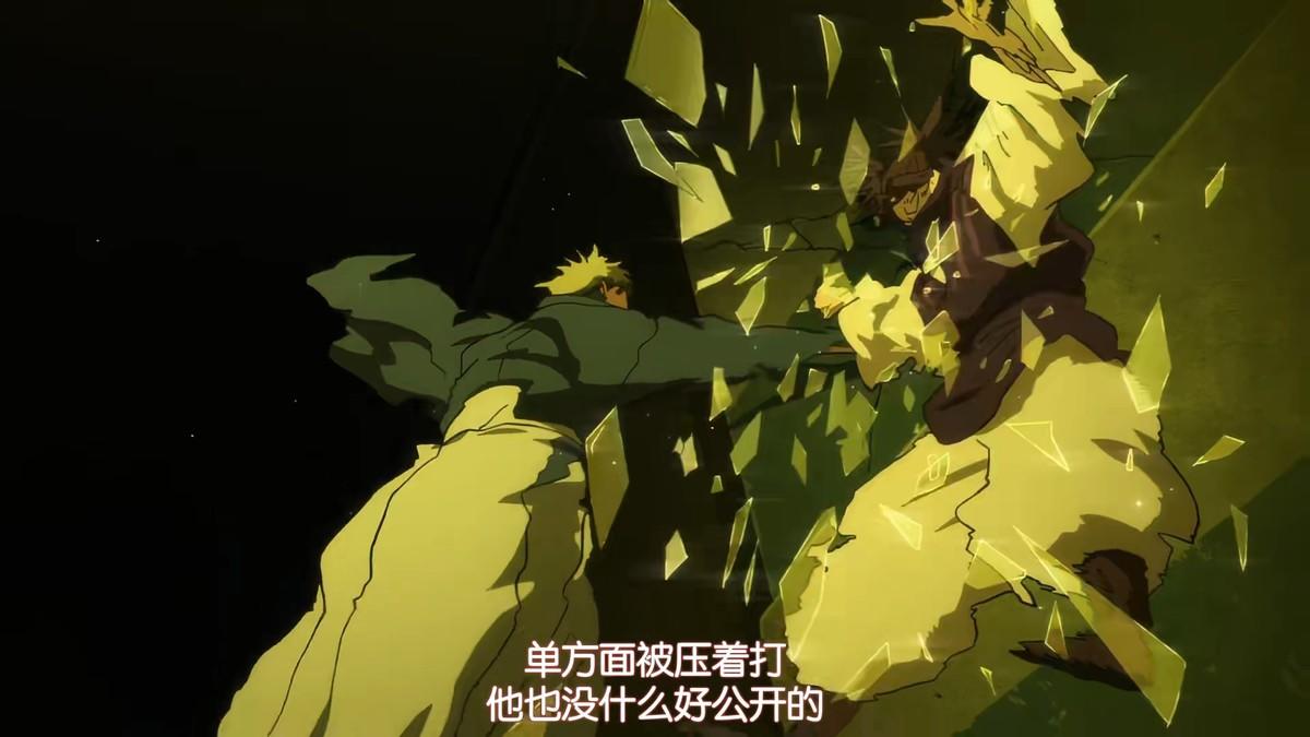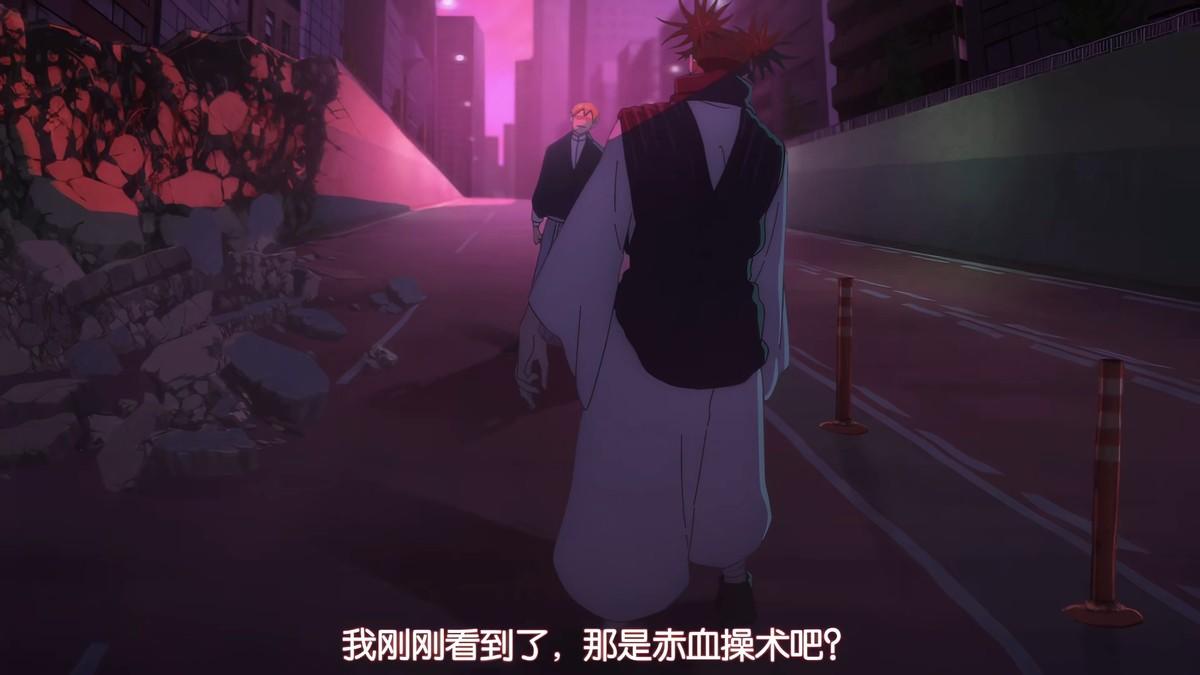 特级咒术师乙骨忧太,登场。用到了和《电锯人 蕾塞篇》类似的演出效果,咒灵的血澎涌而出,将背景染上一抹奇幻色彩。