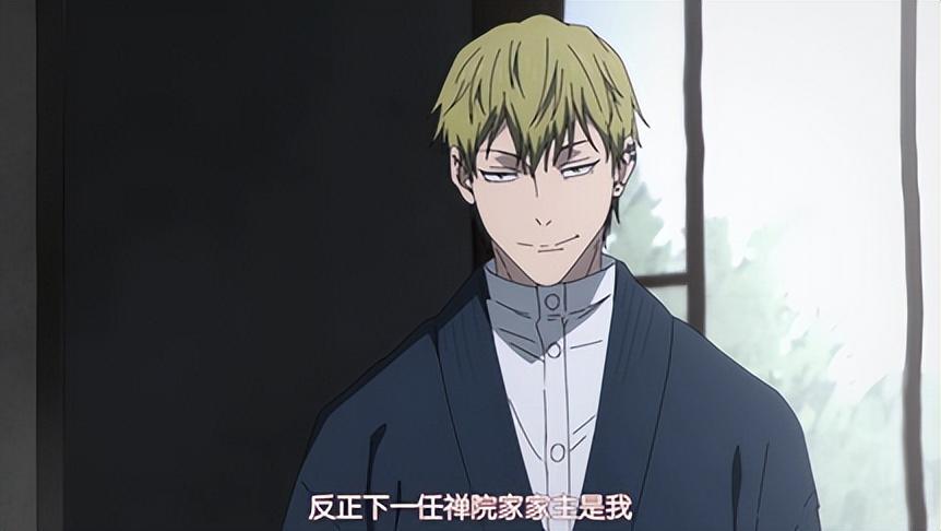 串台了,咳咳。接着就是《咒术回战》系列堪称一绝的OP,不少大佬都做过解析了,白糖在这里就不东施效颦了23333。接着就切到下一个镜头了,说实话白糖看到这还是有一些懵圈的,直到关于“禅院家”、“真希”等熟悉字眼出现在明白,现在的视角是家主禅院直毘人战死后的禅院家,而这个说着“当不了男人背后的女人活该遭到背叛”的厌女黄毛,是家主之子禅院直哉。这里白糖就不谈漫画的塑造了,起码动画在这里如果是想要把直哉塑造的十分不讨喜的话,那的确是成功的塑造,这一脸奸诈加上唯利是图的话语,确实很难让不认识他的观众喜欢上。不过听说直哉有很多女粉来着,貌似对动画里的塑造不是很满意。因为禅院直毘人在遗嘱中表示,如果五条悟出了意外就让伏黑惠继承家主之位,让直哉十分不爽,念念有词的说要借着讨伐宿傩容器的理由杀死伏黑,下一个镜头在《涩谷事变》的闪回后回到了虎杖身上。