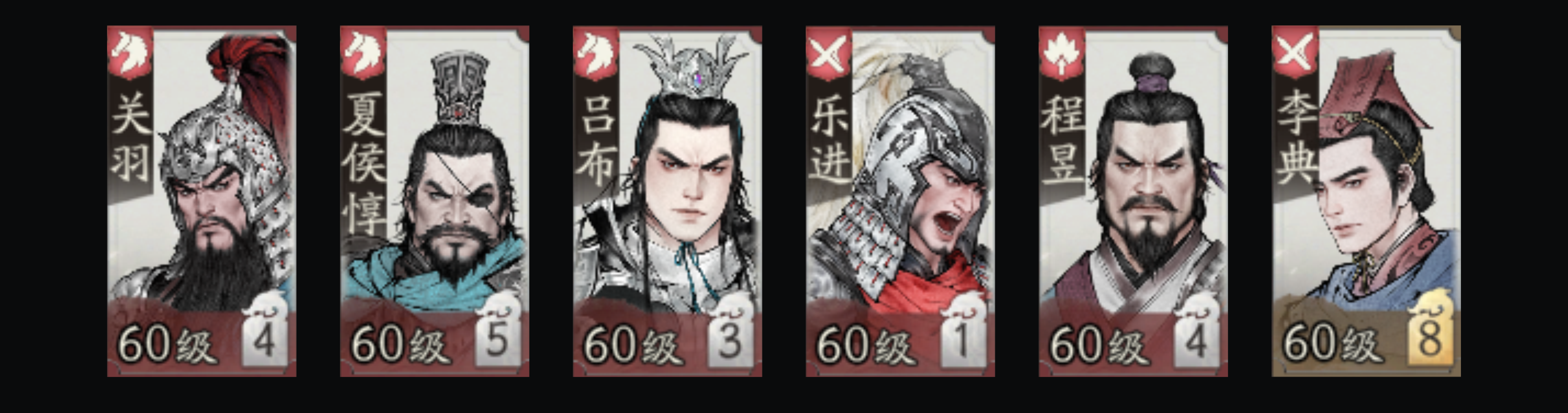 吕布、关羽、夏侯惇、乐进、程昱、李典