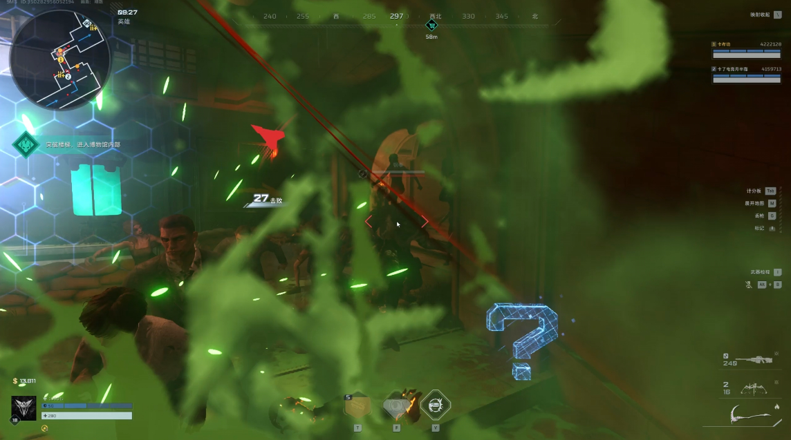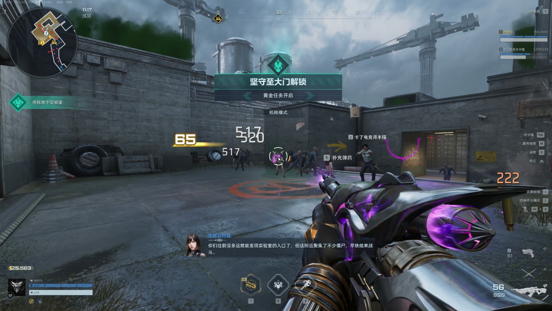逆行者们进入地图,向前走即可触发区域关卡任务-清理40只丧尸。在这里推荐大家使用“幽冥毒皇”、“复合弓”、“飓风之龙”、“钢铁轰鸣”、“生命线”... ...等能造成范围伤害的武器进行攻击,这样不仅可以更快速清理丧尸,还能保障自己不那么容易被丧尸围攻。