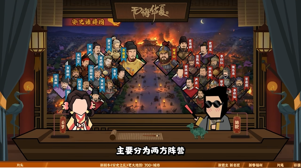 本次安史之乱势力达到40个,城池达到了700+,远超大唐主剧本,为无悔华夏最大的剧本。剧本中除了大唐的各方势力,外邦也蠢蠢欲动