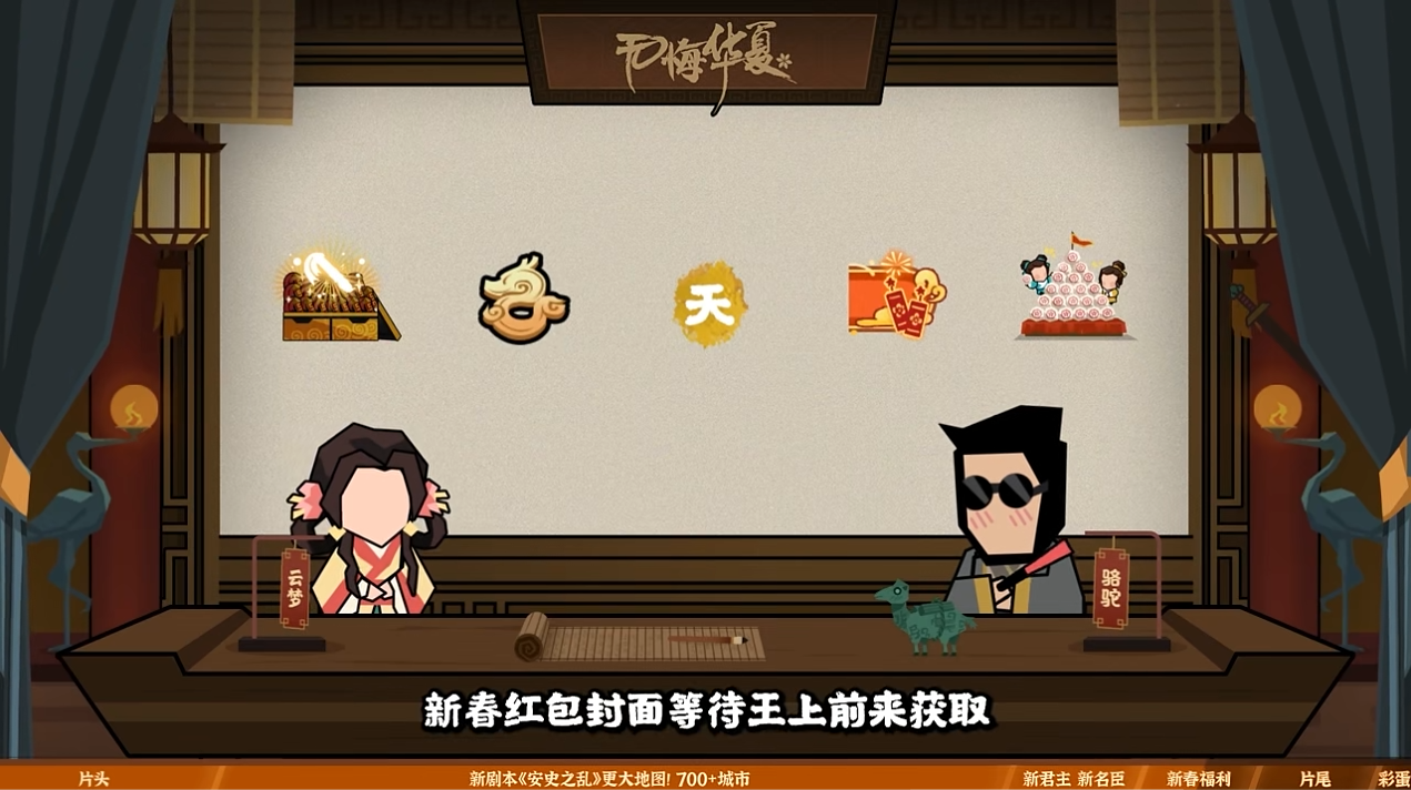 本次过年福利依旧沿用老一套,还是传统的签到奖励和好友邀请名臣等