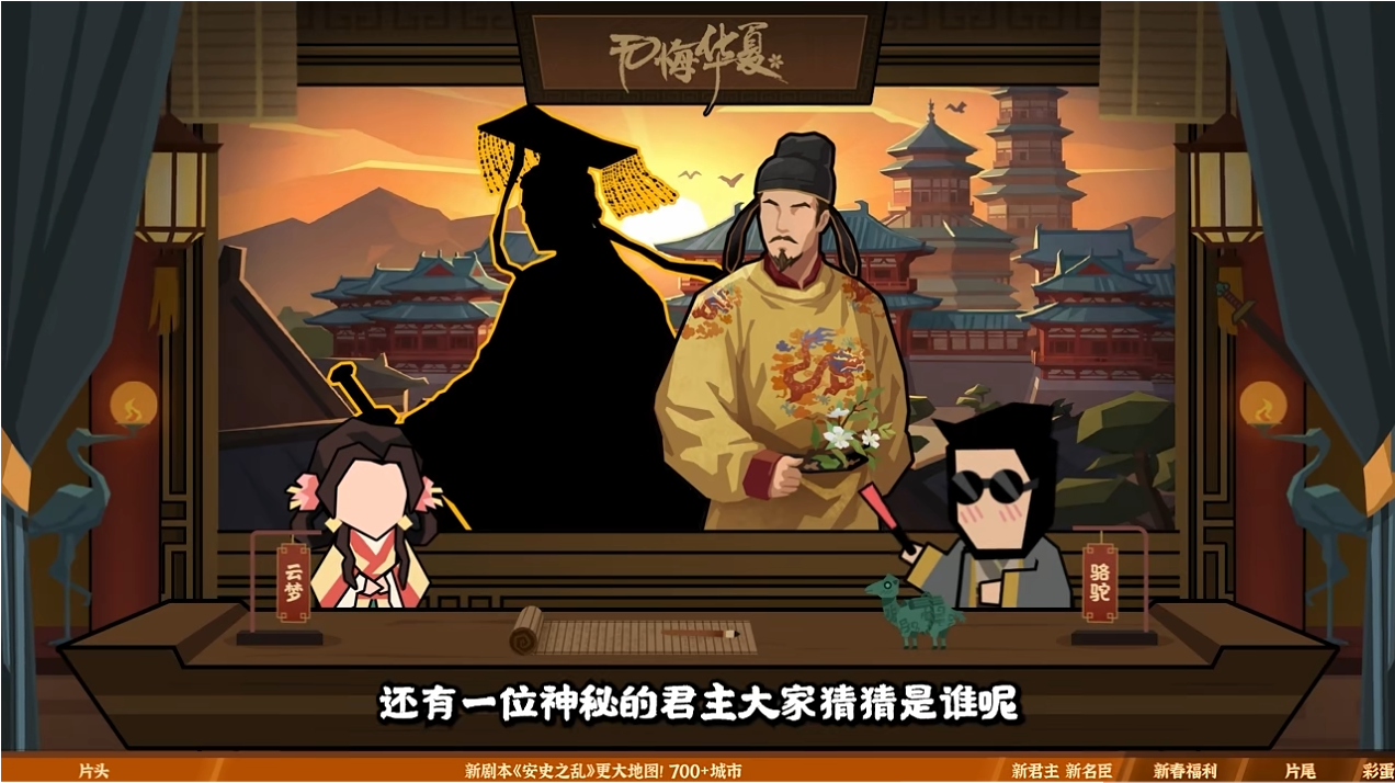 本次也会同步上线两位君主,其中一位是免费赠送的李隆基,另一外目前只有剪影(个人猜是秦皇汉武中的一位哟~)
