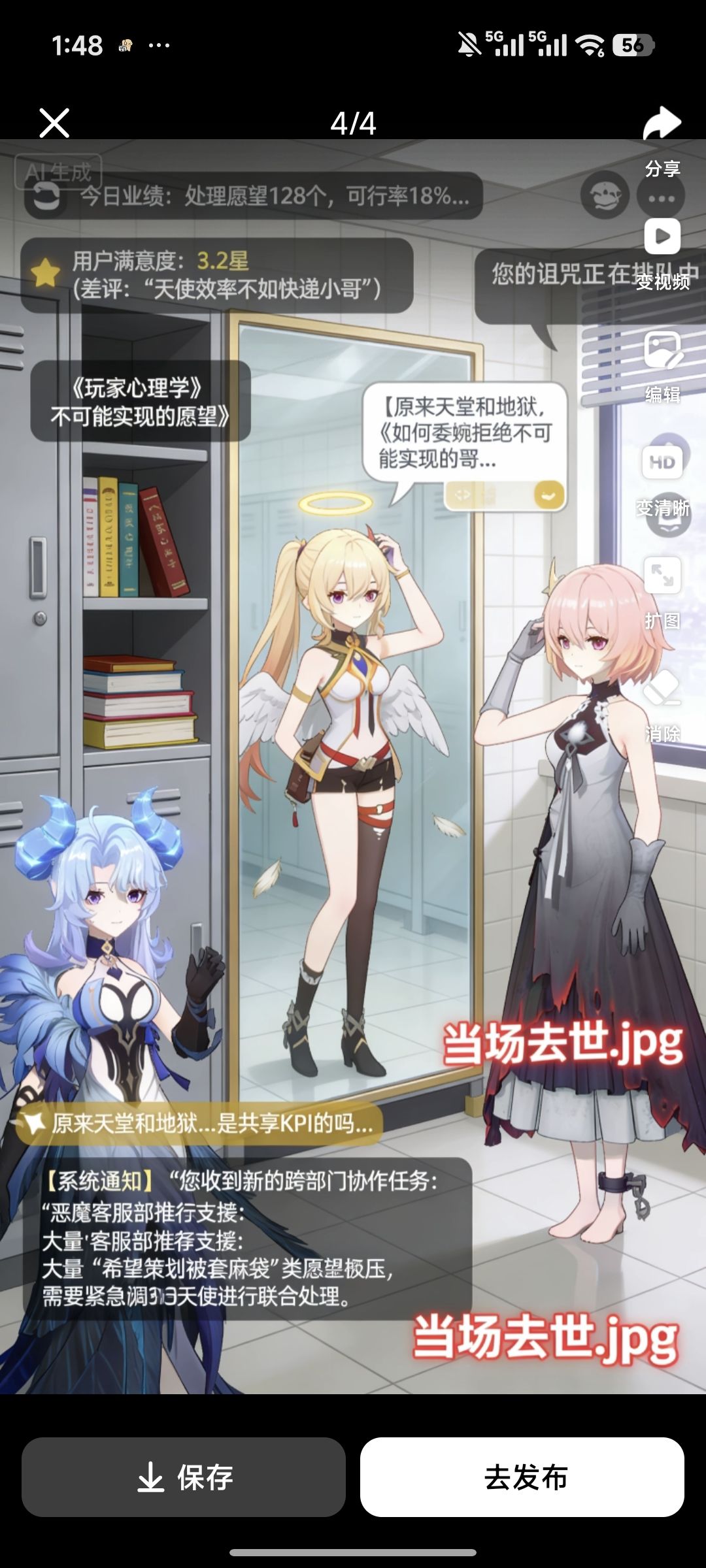 “恶魔客服部请求支援:大量‘希望策划被套麻袋’类愿望积压,需要紧急借调3名天使进行联合处理。”