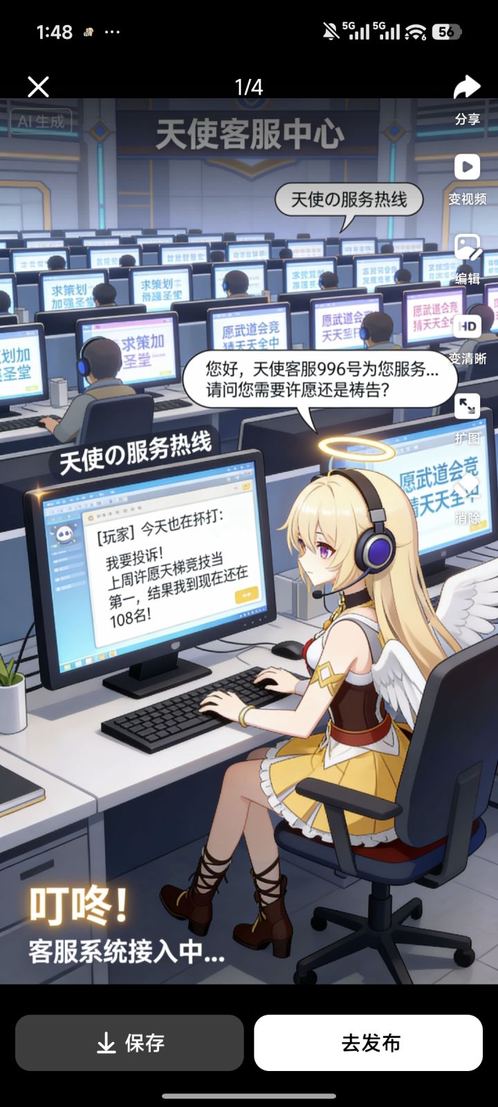 1.客服电脑屏幕滚动各种愿望:“求策划加强圣堂”“愿武道会竞猜天天全中”“希望拍卖会的东西便宜点”