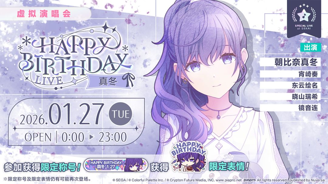 即将举办「HAPPY BIRTHDAY 演唱会 真冬 2026」!