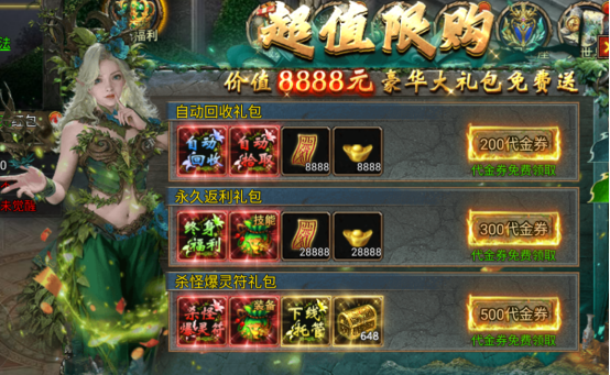 上线后,立领价值8888大礼包!官方送超值代价券!开局瞬间解锁自动回收、自动拾取、全套技能以及永久返利等核心特色功能,超值豪礼享不停!