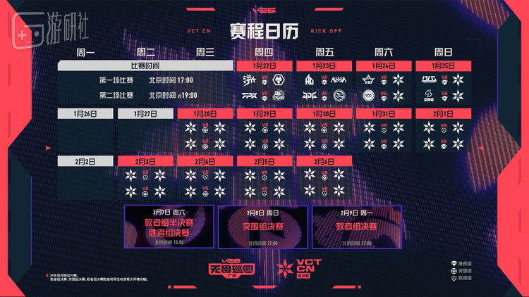 2026 VCT CN联赛启点赛将首次引入三败淘汰制,除最后三场BO5外,其余比赛均为BO3。队伍累计获得三败即被淘汰。