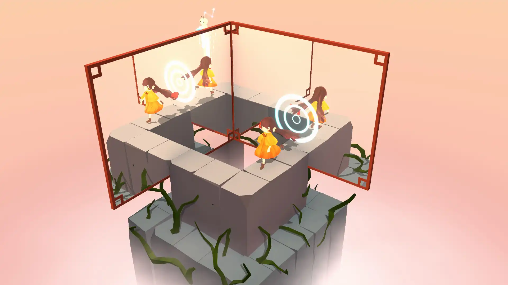 游戏内容很足,共有七大主题的关卡,越到后面难度越高。 基本操作就是通过操纵镜子,将一些镜像里面的物体映射出来,然后玩家操纵主角从上面经过,有的时候女主还可以和姐姐交换世界,从女主姐姐的视角经过特定场景。