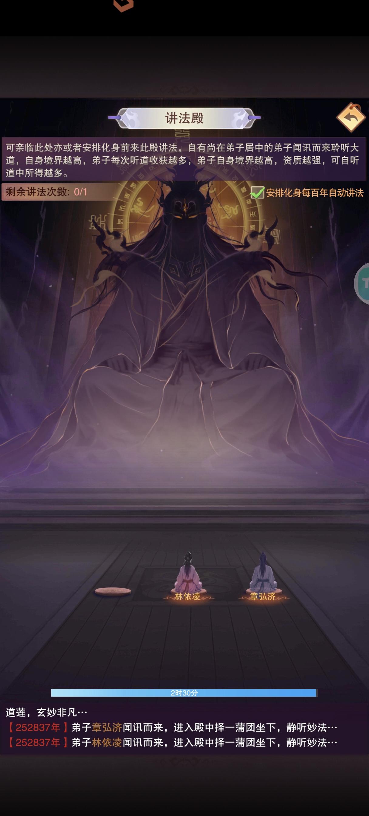 一个温馨提醒,开道统后不要到讲道室把化身讲道勾上!!!!会立刻开始讲道 ,最好先显化飞升台收了弟子再说