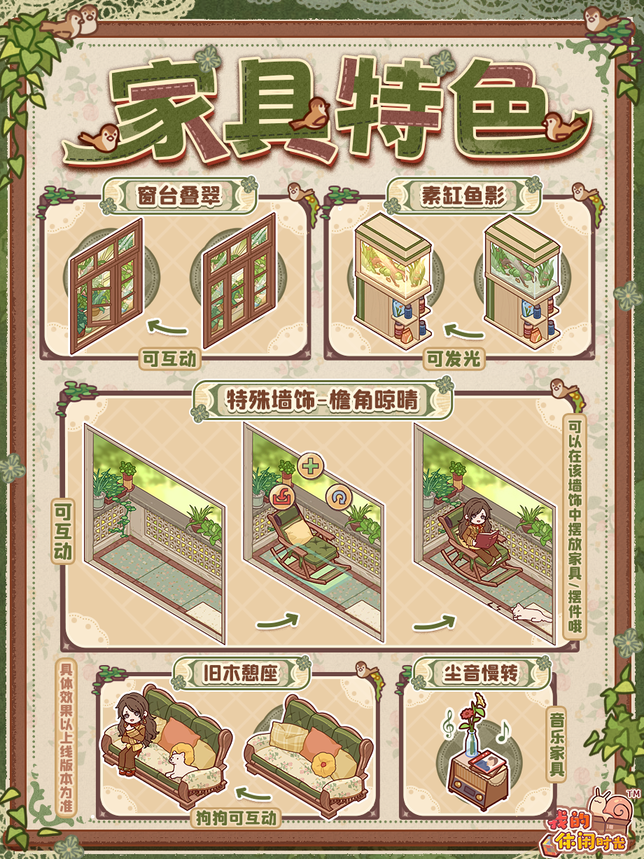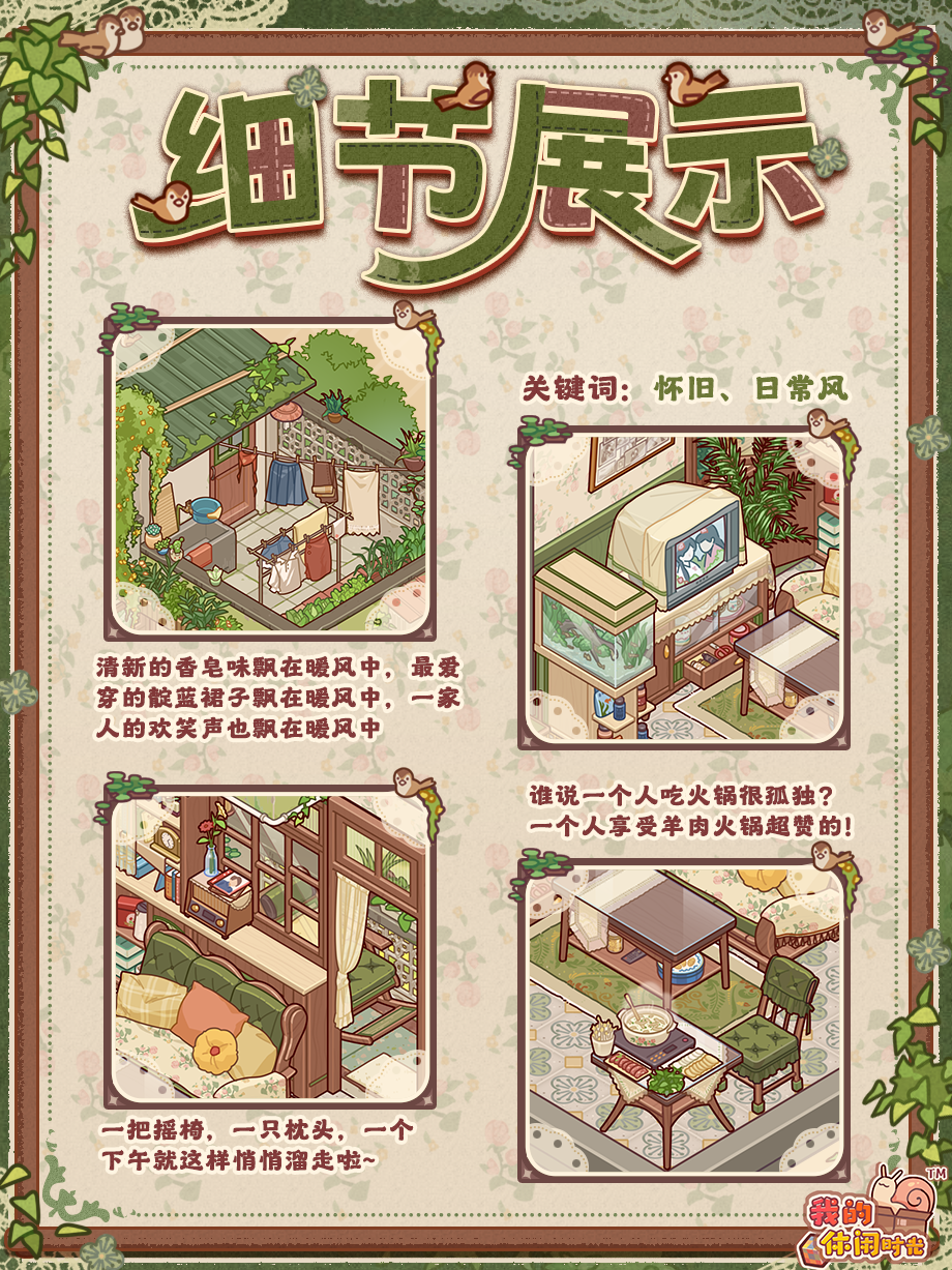 🍃全新限时套间「暖风小筑」即将于1月31日上线!今天先为各位小蜗带来「暖风小筑」套间的设计手帐,还能在特殊墙饰「檐角晾晴」中摆放家具/摆件!快跟居居一起近距离欣赏套间细节吧~