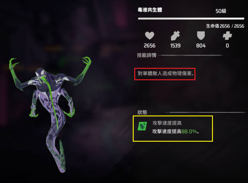 【适格者】通用高光时刻,加厚猛毒与共生体的肉度,同时作为战士也有抗伤环节,就能够吃上微弱的攻击力提升。
