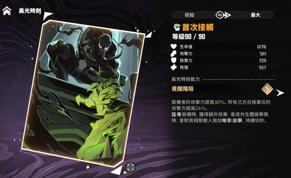 本期的主线故事《蜂巢梦境》推出的三星角色是毒液,但在国际服命名为“猛毒”所以接下来全文都以“猛毒”,猛毒是一位定位战士型,宇宙类型的角色,输出属性为物理,从技能来看,猛毒是属于召唤体系,技能比较朴实无华,在国服安排猛毒先上线,凤凰女琴后一个版本上线,然而国际服是先安排了凤凰女上线后才是猛毒,所以就出现了爬到峰顶最后摔到谷底的现象,能再设计一个召唤体系,也算是给召唤体系盖上棺材盖了。