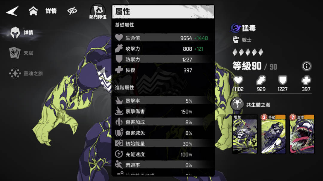 猛毒需要靠【心灵1】来突破共生体跟自己联动功能,这是优先点的,其次是【理智1】让3费战技也能对队友受益,增伤是70%并不低了。