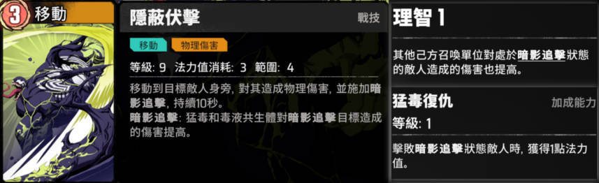 若是你有抽到4,【心灵3】跟【理智3】又该是哪个优先呢?【心灵3】已方召唤单体被击败,猛毒获得终极能量,释放终极技猛毒就能刷出更多的召唤物并且它们能输出的就多,而如果你解锁的是【理智3】那么就会出现,全体的攻速是有了,但猛毒回能速率低,一把下来就靠初始速率才能开出终极技,并且不能及时开出终极技导致法力值紧张,所以这里推荐解锁的是【心灵3】