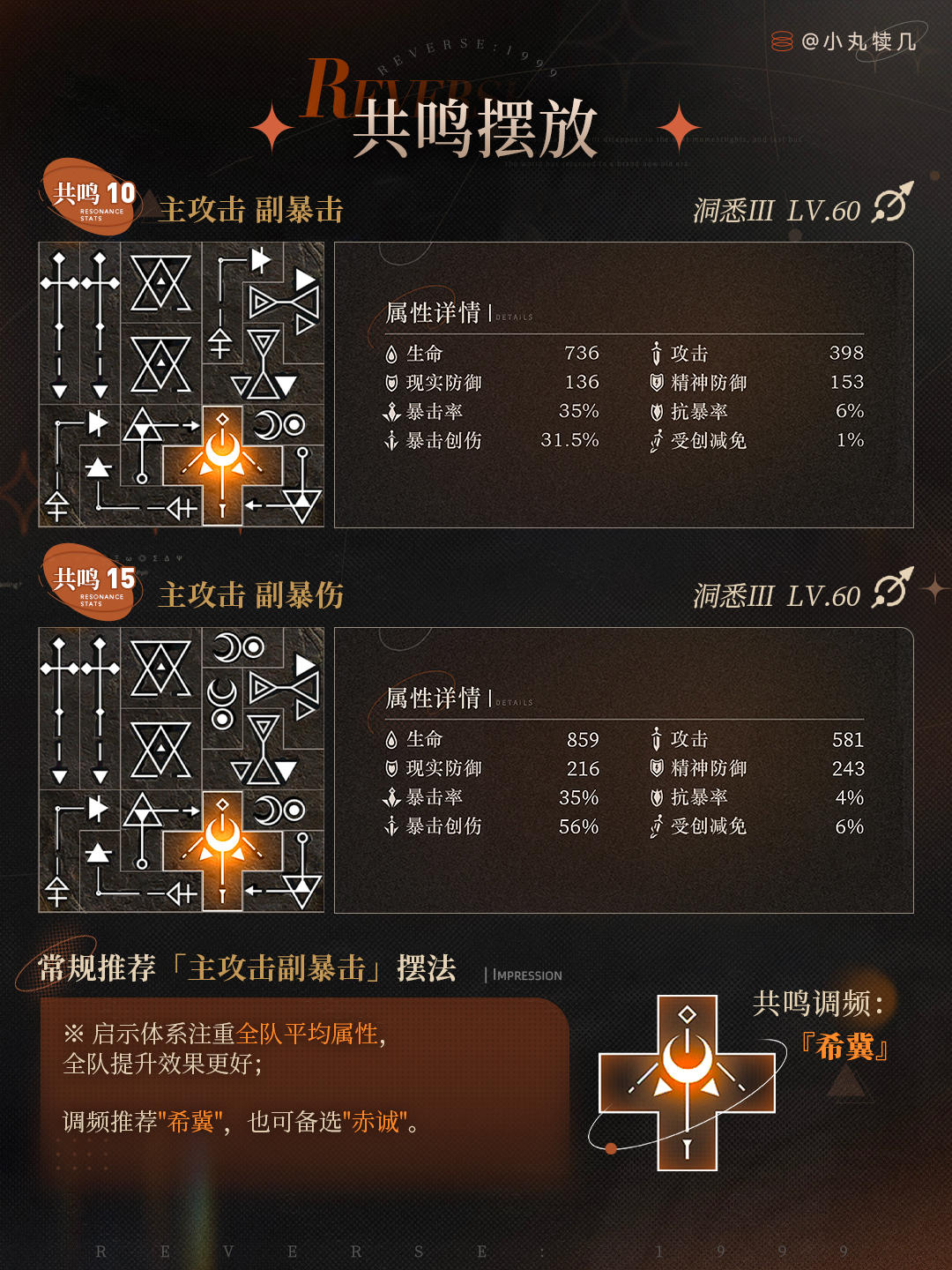 ※共鸣10『主攻击副暴击』摆法: