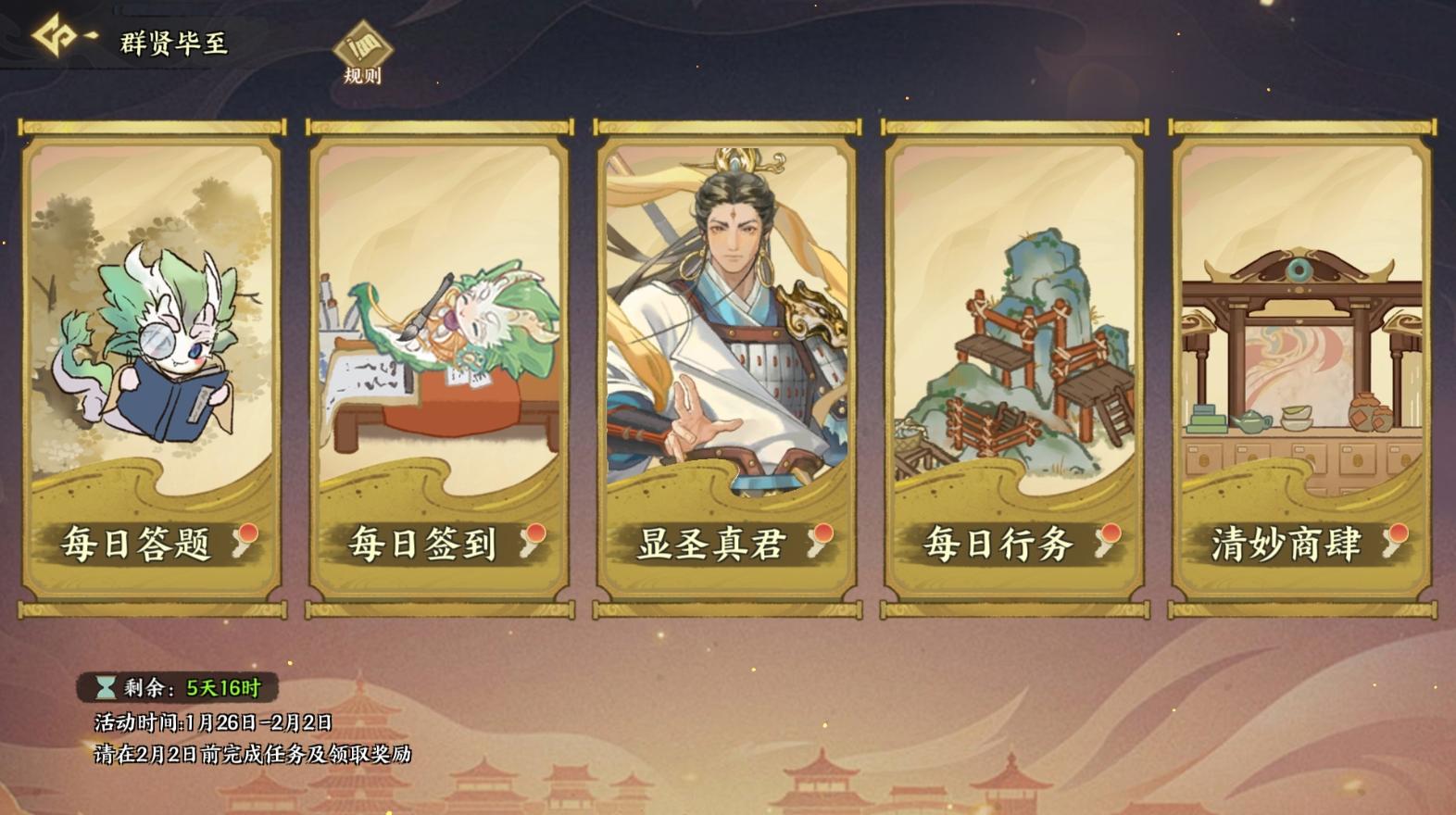 专属活动「群贤毕至」:每日答题、签到打卡、任务挑战三重福利齐发!轻松参与就能狂揽海量拜帖,助力你快速拉近与真君的距离!
