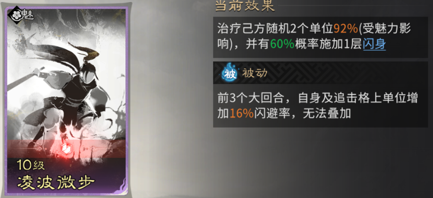 被动技能固定携带【凌波微步】,增加全队的闪避率。