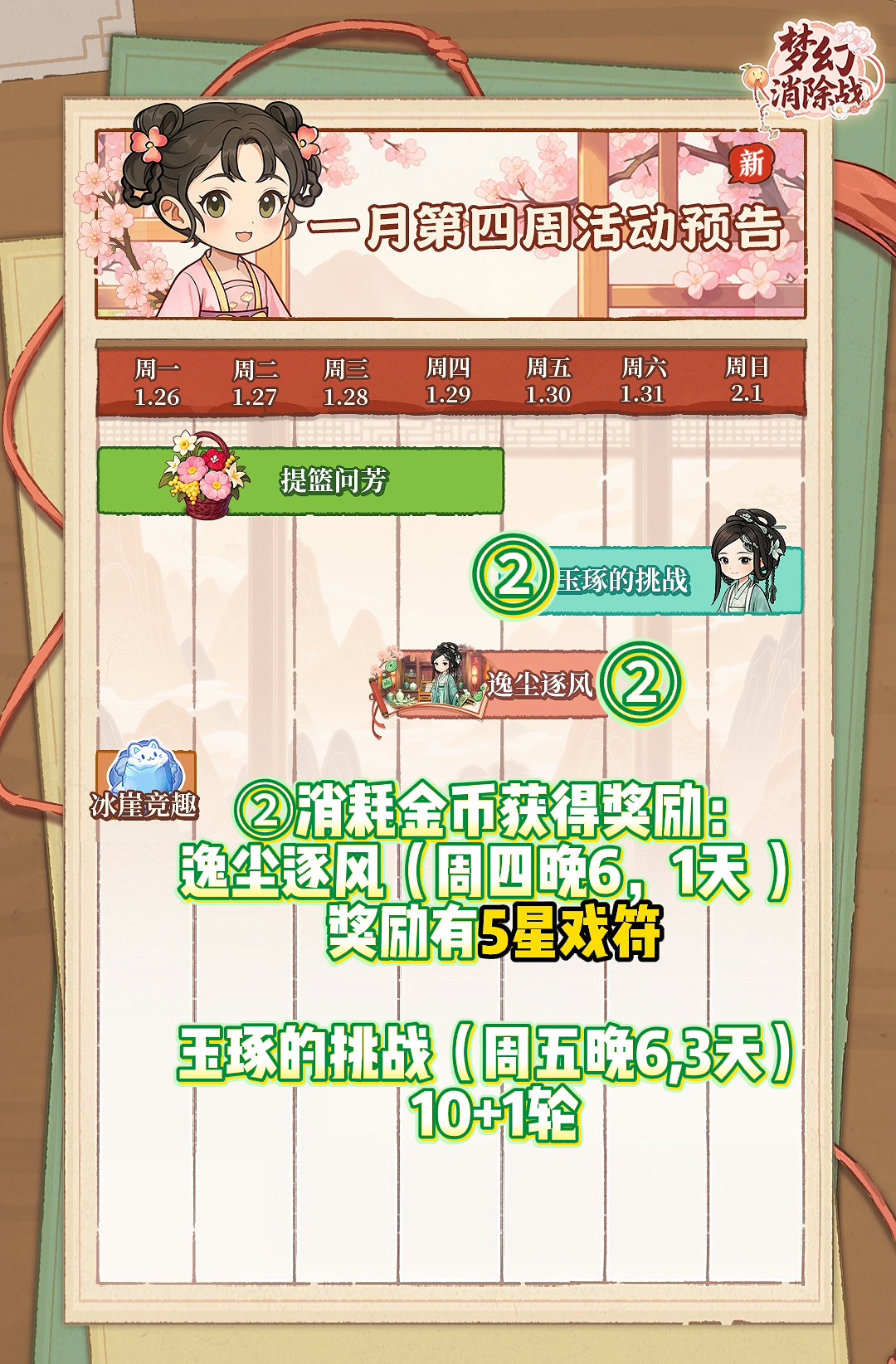 下周活动 预告解码(一月第四周)