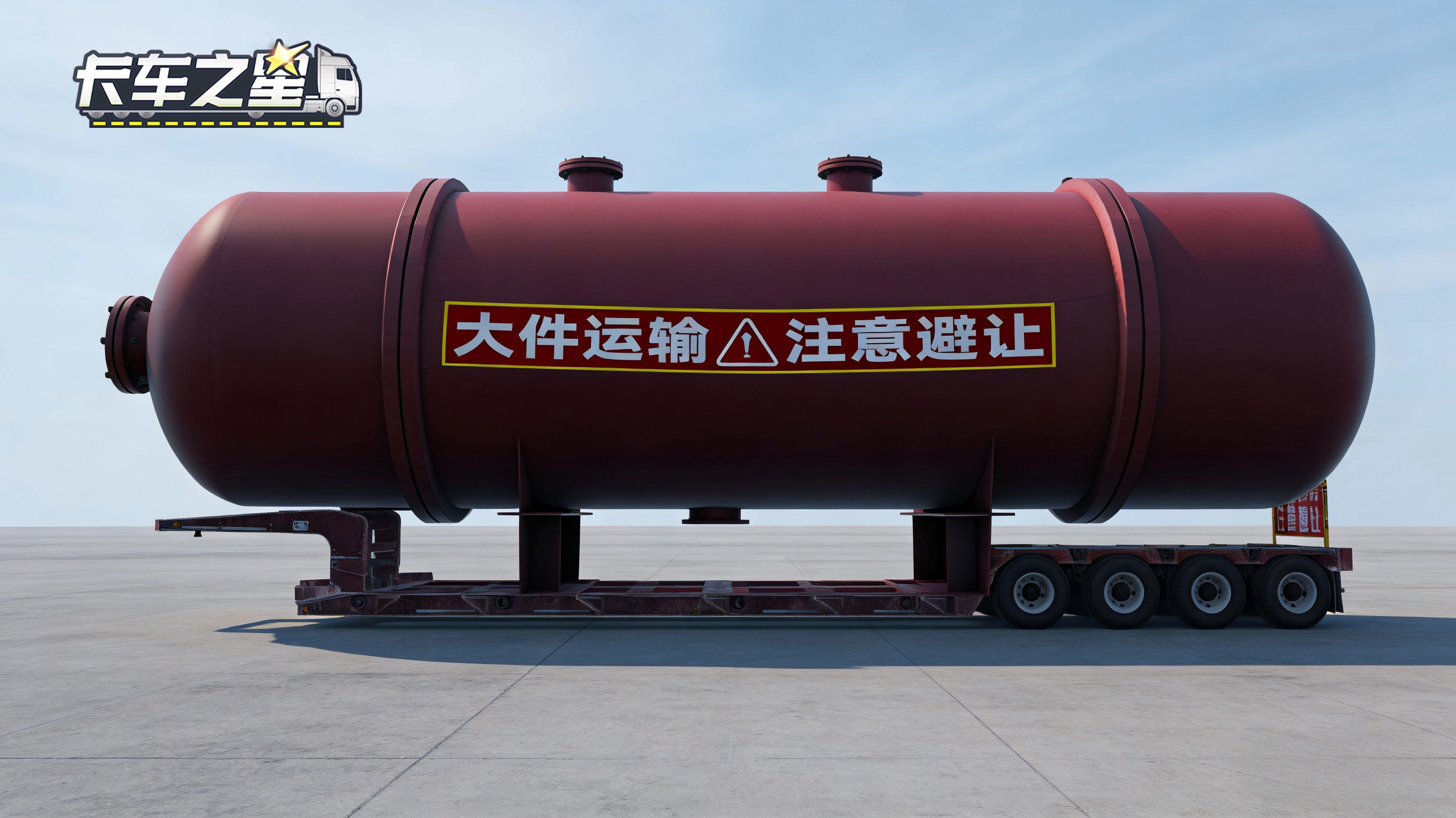 比变压器更具压迫感的,是这台100吨级工业冷凝罐。罐体直径5.6米、长20米、高7米,压迫感拉满,密封罐体重心多变、无受力点,装卸需专用吊具。该货物的运输难点不仅在于极限载重,更在于对路况的极致要求,通行难度拉满,极具挑战性。