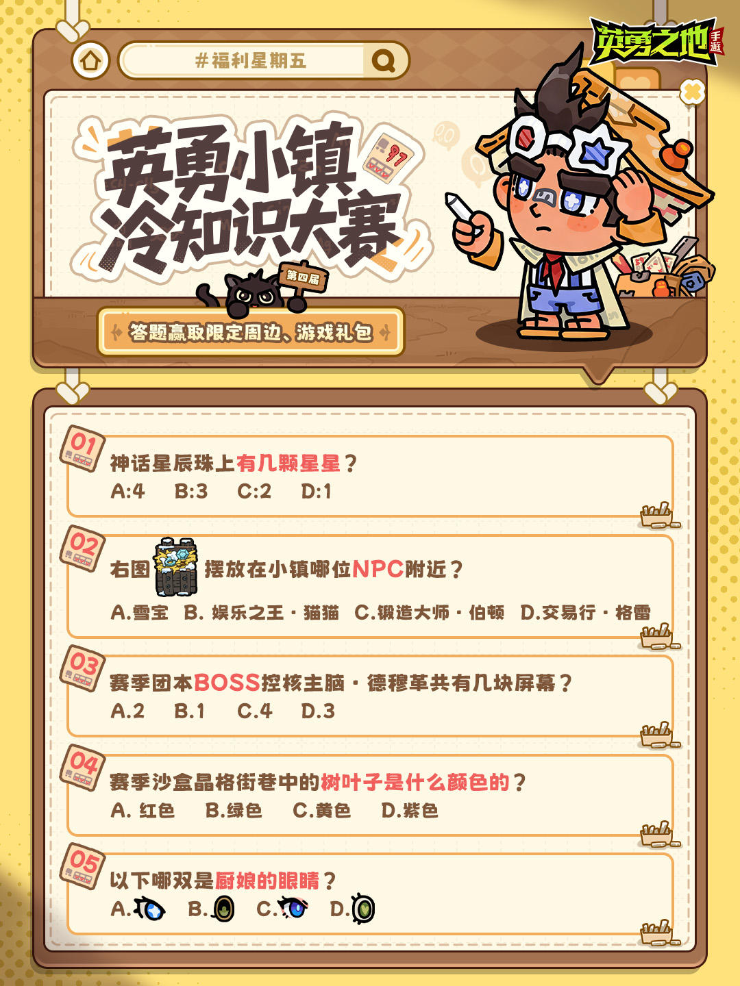 想不起来不要紧,逛逛英勇小镇就能找到答案啦(ง •_•)ง将你的答卷留在下方【评论区】,即有机会获得趴趴毛绒公仔(随机款)!