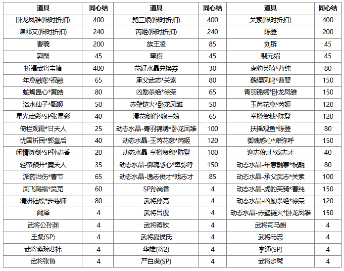 1、同心结可兑换奖励,若兑换奖励是在此次活动前已拥有的永久武将、皮肤、三国秀,则无法重复兑换。