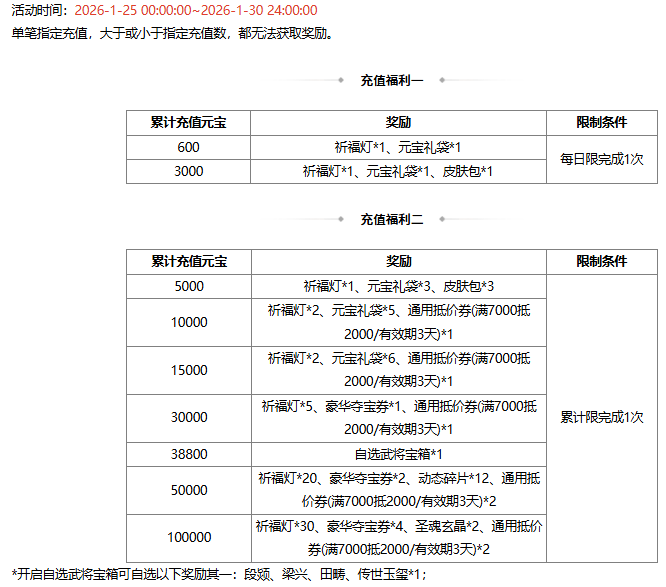活动时间:2026-1-25 00:00:00~2026-1-30 24:00:00