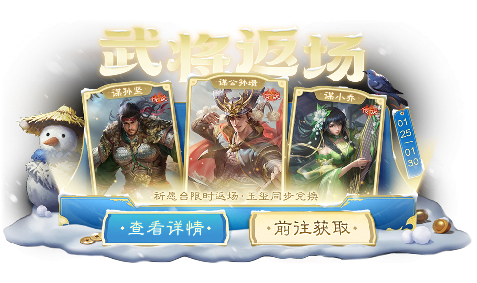 *本期上新 岁末龙珠活动(谋孙坚)、清寒龙珠活动(族钟会),返场 庆典龙珠活动(谋公孙瓒)、乞巧龙珠活动(谋小乔),龙珠可购买时间:2026-1-25 00:15:00~2026-1-30 24:00:00;