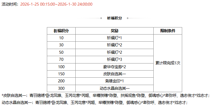 活动时间:2026-1-25 00:15:00~2026-2-1 24:00:00