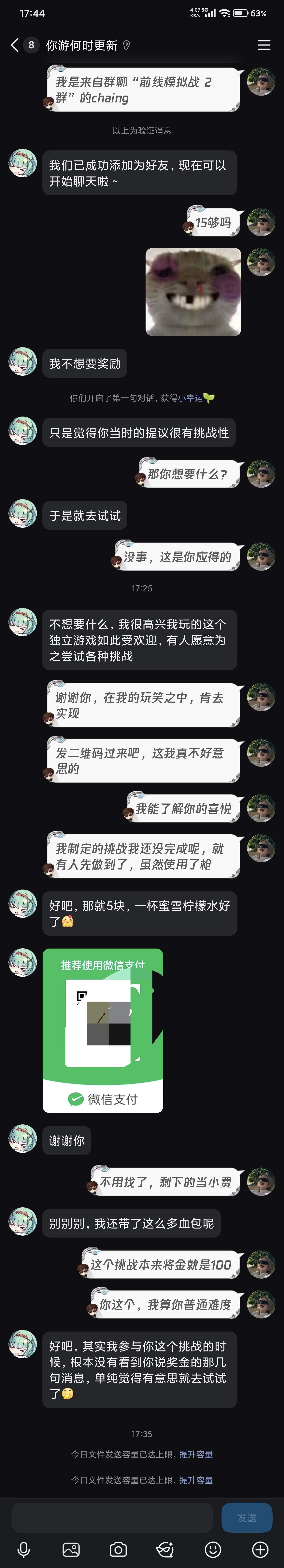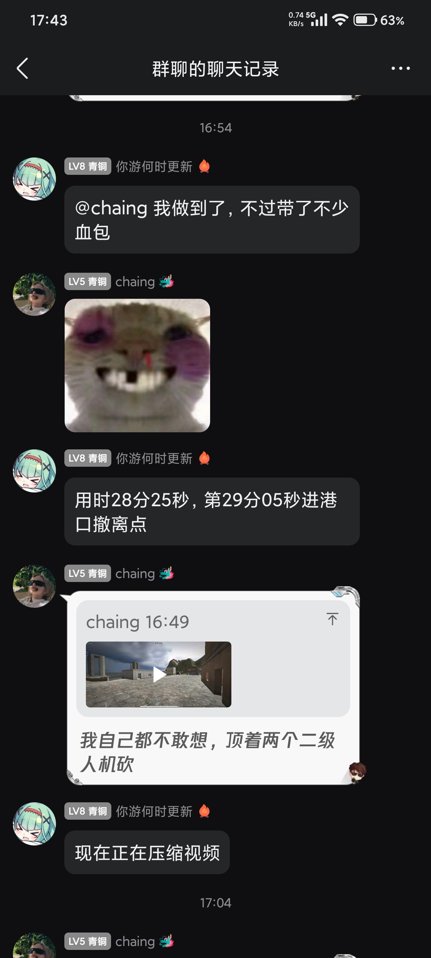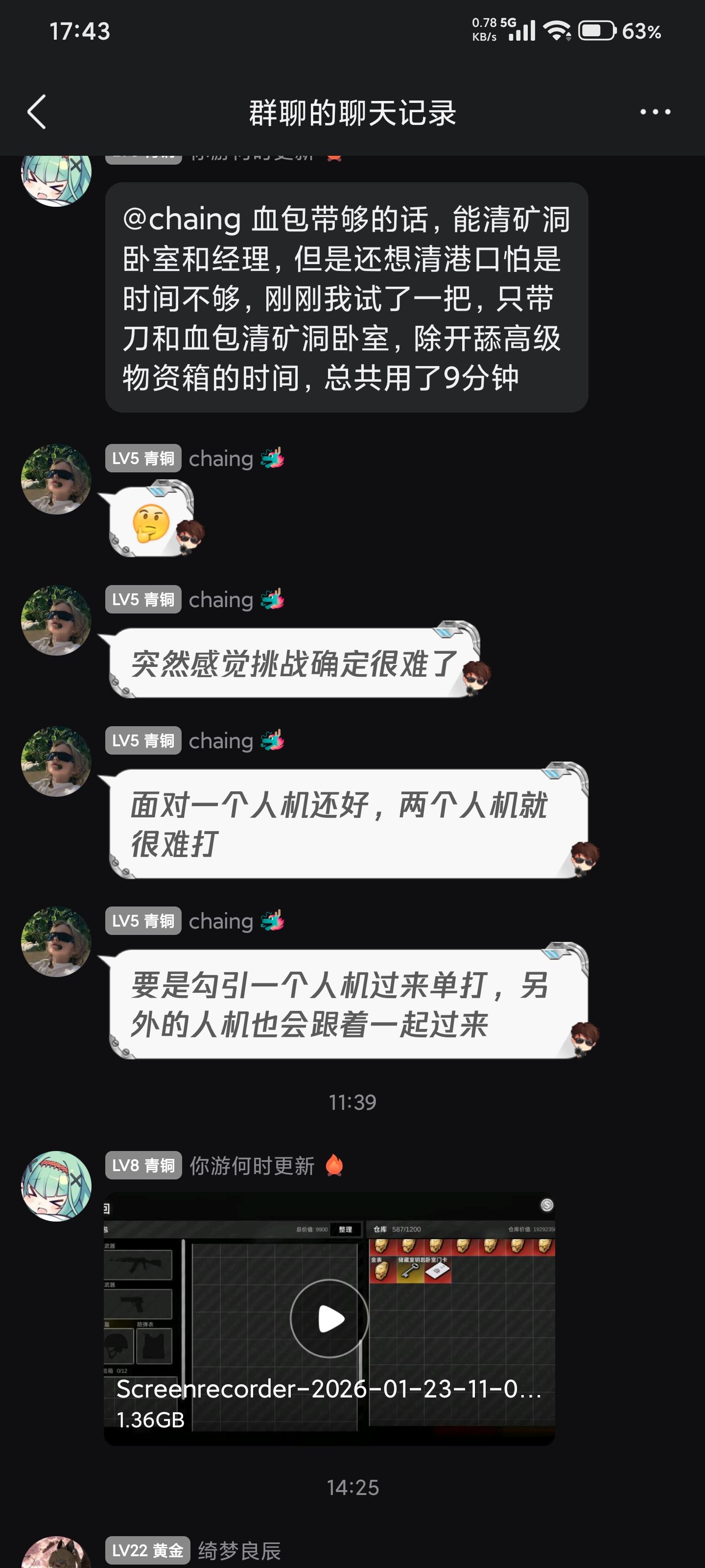 一开始,我只是在教新手跑刀,跳起来砍人机可以无伤,然后一股脑发了个挑战(用一把刀清图)起初各个大肘子们不是无语就是嘲讽,觉得最不到,只有他坚持做到了,虽然他用了枪不过清图并撤离,我也信守承诺给了挑战费