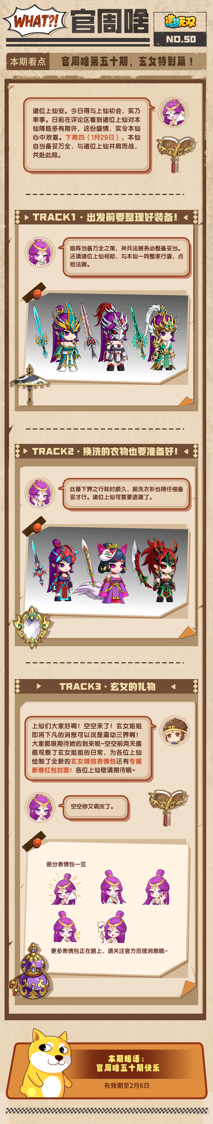 各位上仙下午好!本周是第五十期官周啥!(好快哦都已经五十期了~)我们邀请来了特别嘉宾——九天玄女姐姐为大家主持!一起来看看玄女姐姐为大家带来了什么内容吧~