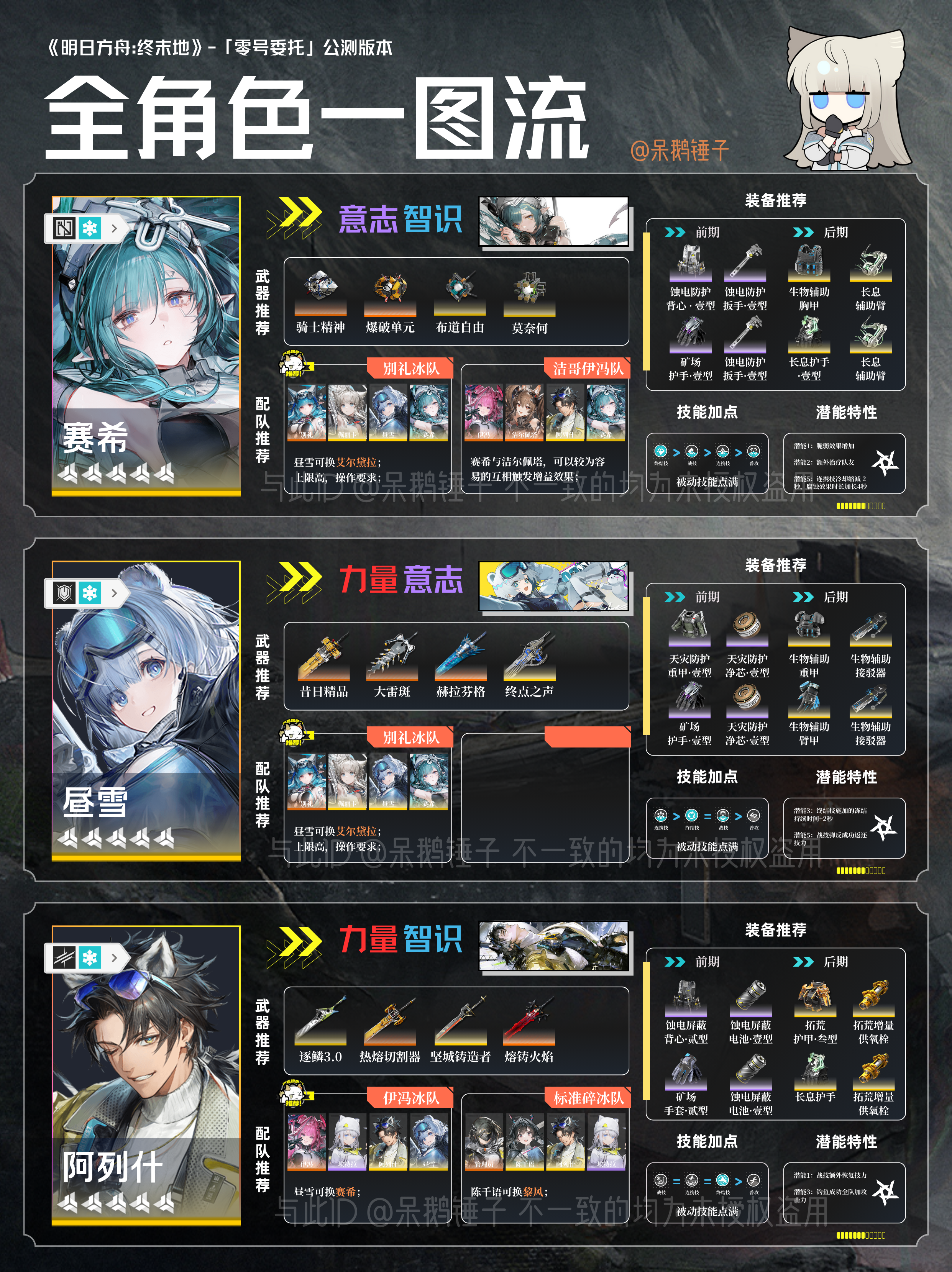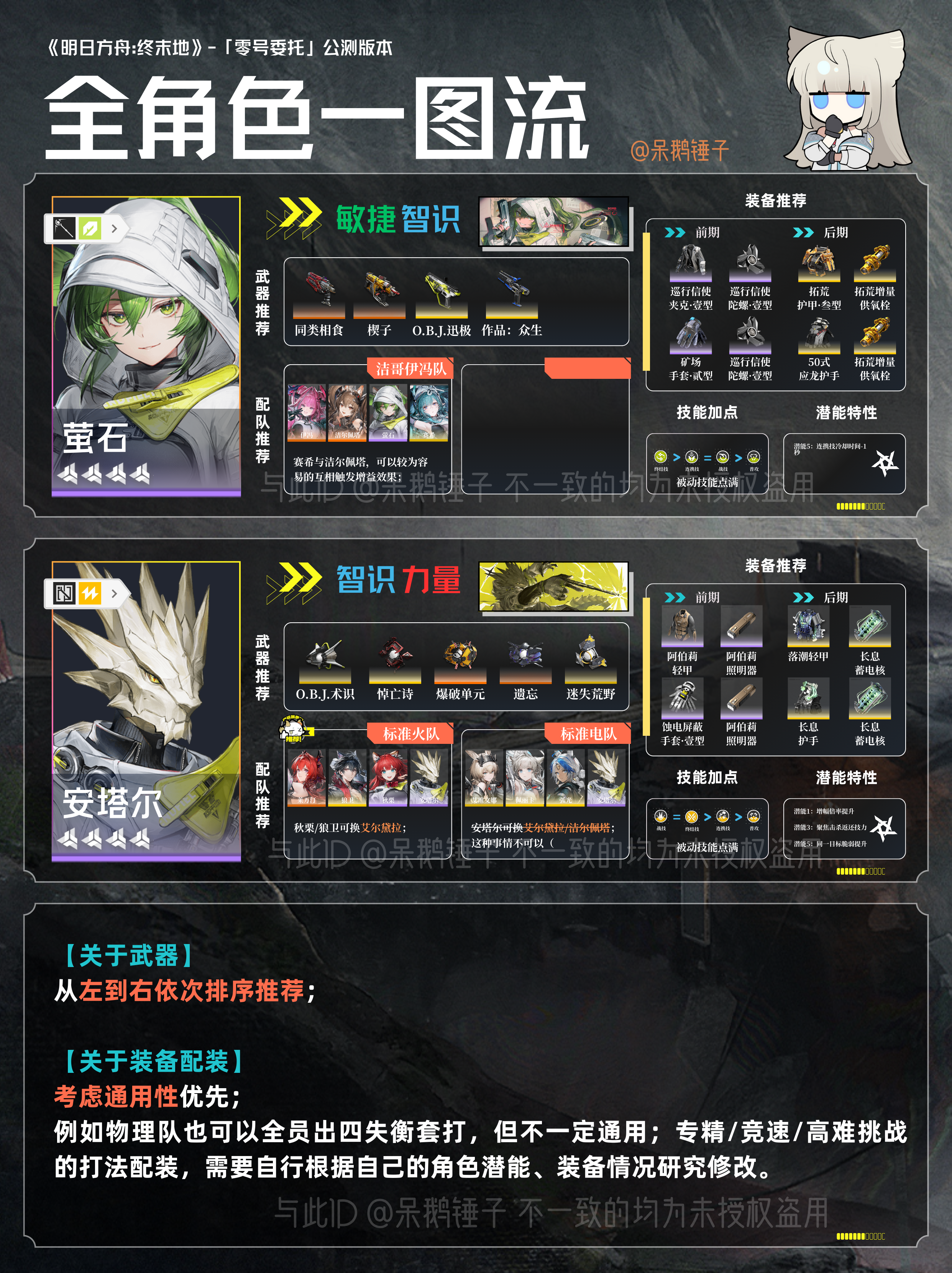 装备配装则,考虑通用性,例如物理队也可以出四失衡套打,但不一定通用,专精/竞速/高难挑战的打法配装需要自行根据自己的角色潜能、装备情况研究修改。