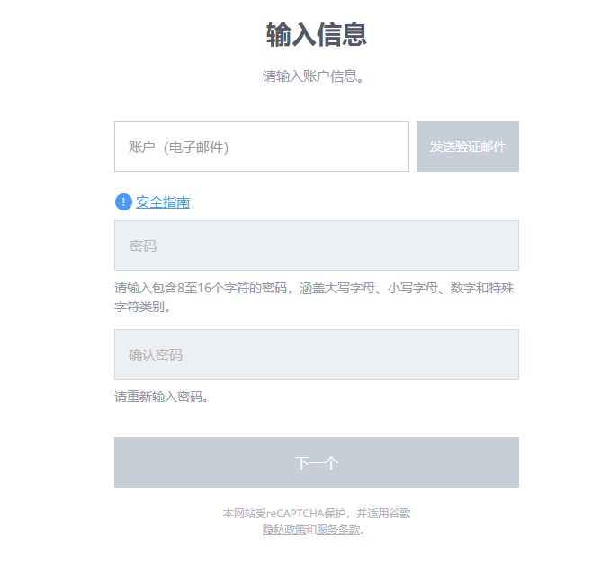 . 邮箱注册:输入邮箱、密码,并验证邮箱。