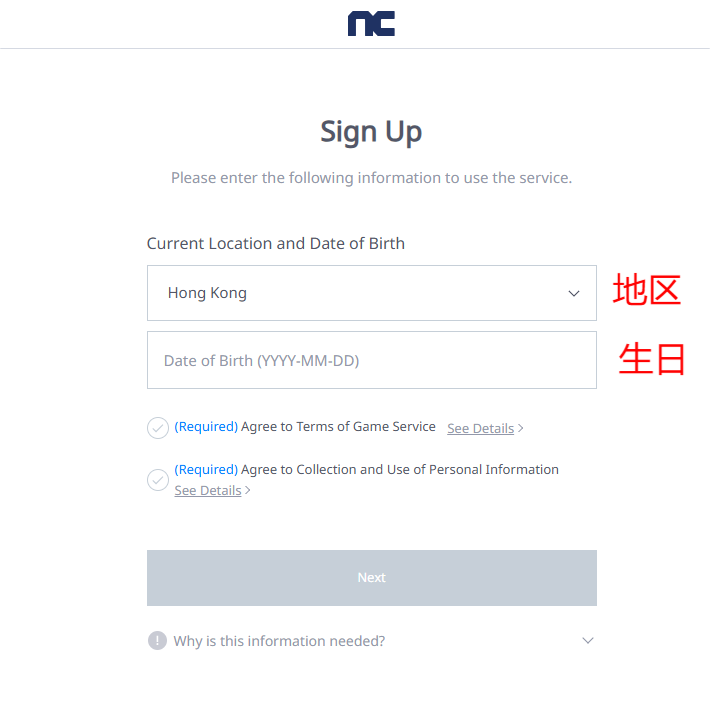 . 选择地区,输入生日。