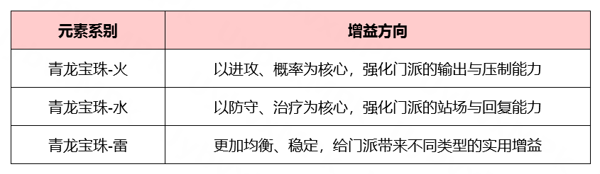 【青龙宝珠】中,蕴含着水、火、雷三种系别的元素力量。少侠需要在赛季神器界面,策略抉择更合适的元素。不同元素的选择,将影响青龙宝珠的能力倾向,为六大门派带来各不相同的能力加持。期待在新的赛季中,少侠能体验到更加多元的流派玩法,感受更加丰富的构筑思路!