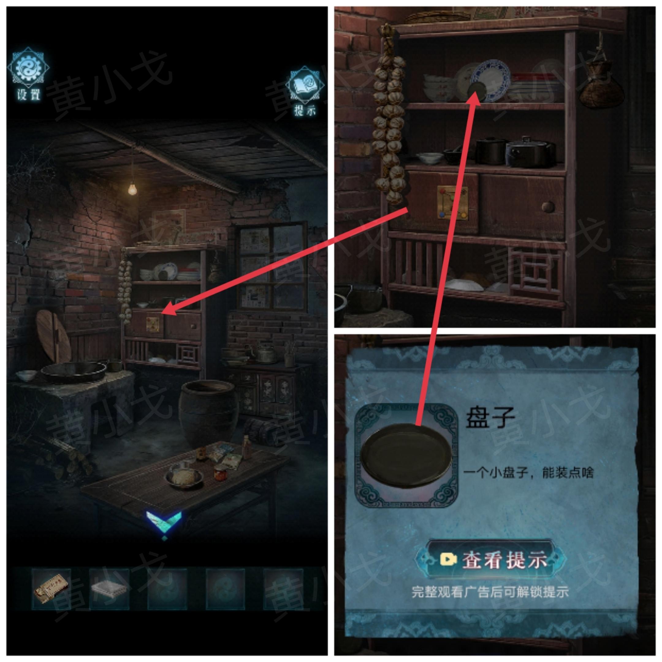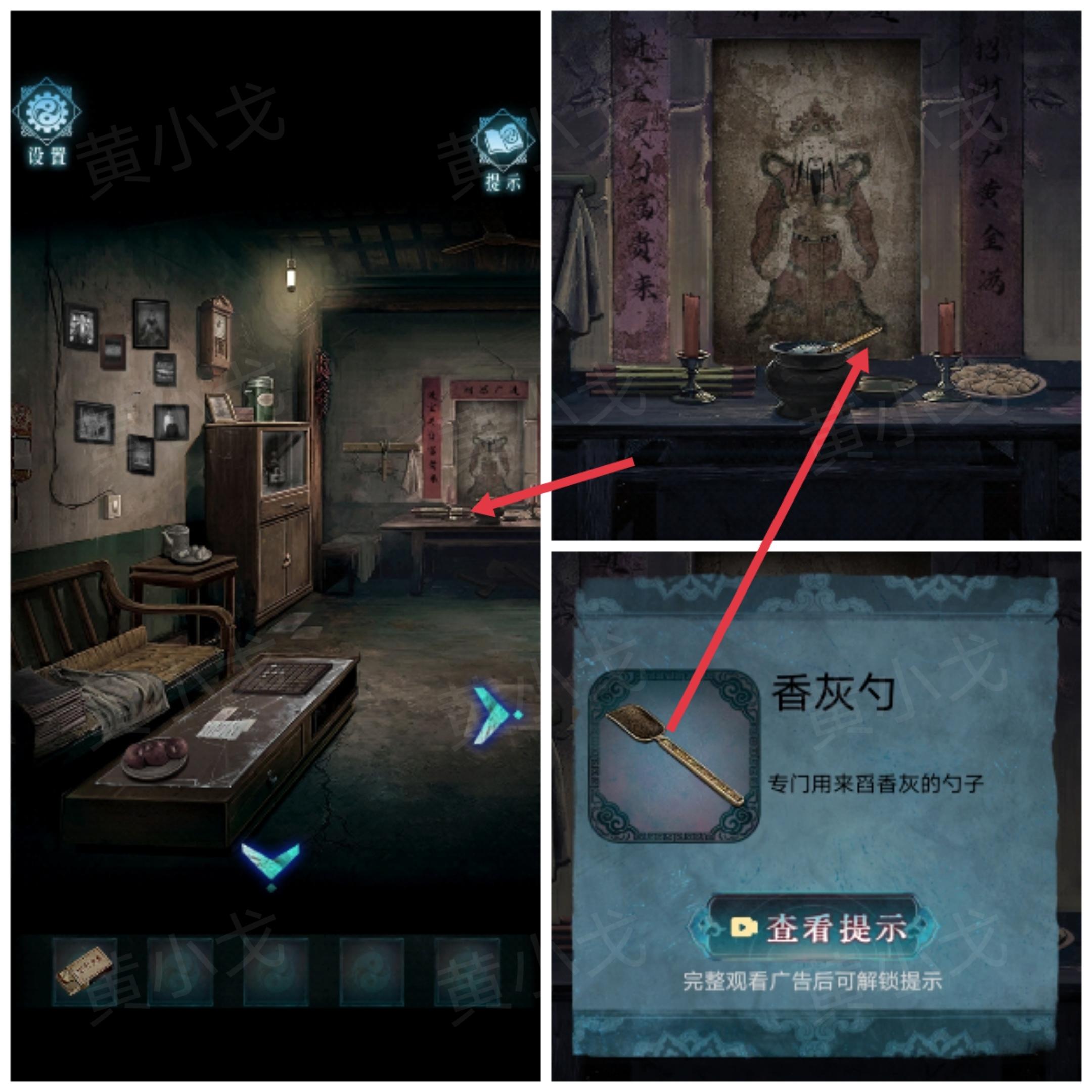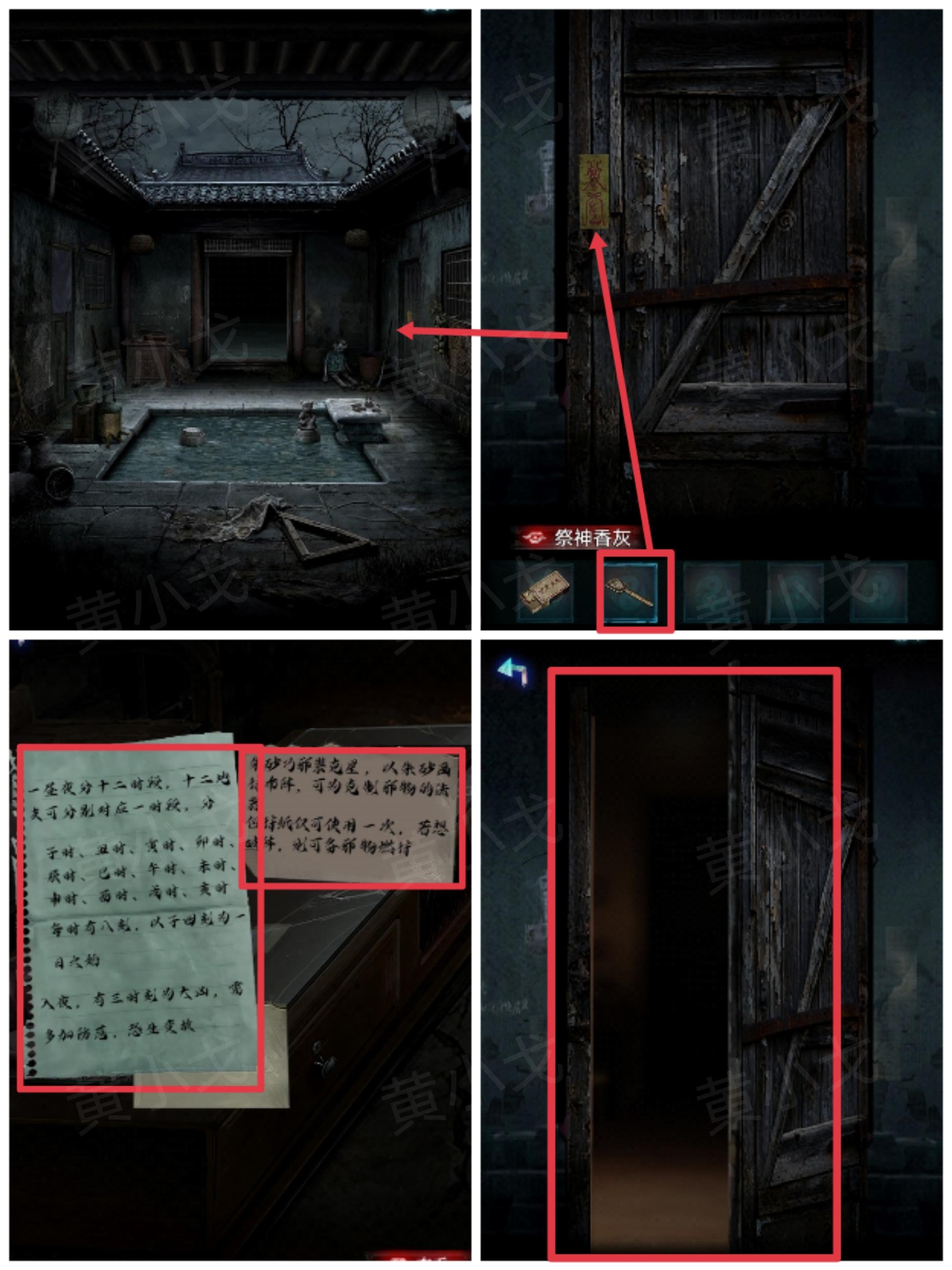 8.点击右侧厨房的门,根据纸条上的线索,用【祭神香灰】烧掉符纸,进入厨房