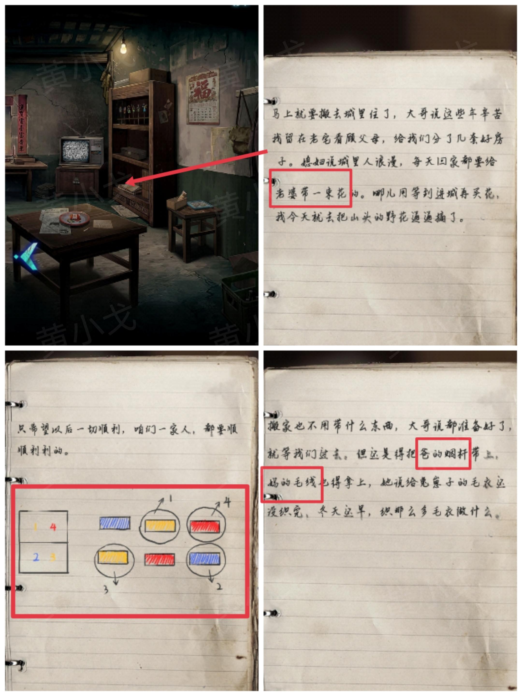 3.查看置物架底层的日记本,获得线索